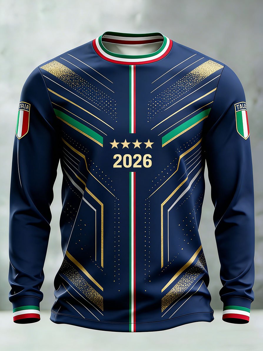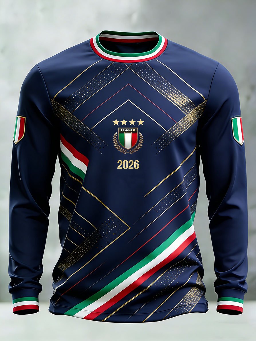 Men's Fashion Italian Football Team Fan Print Crew Neck Long-Sleeve T-Shirt$24.99 USD$79.99 USD