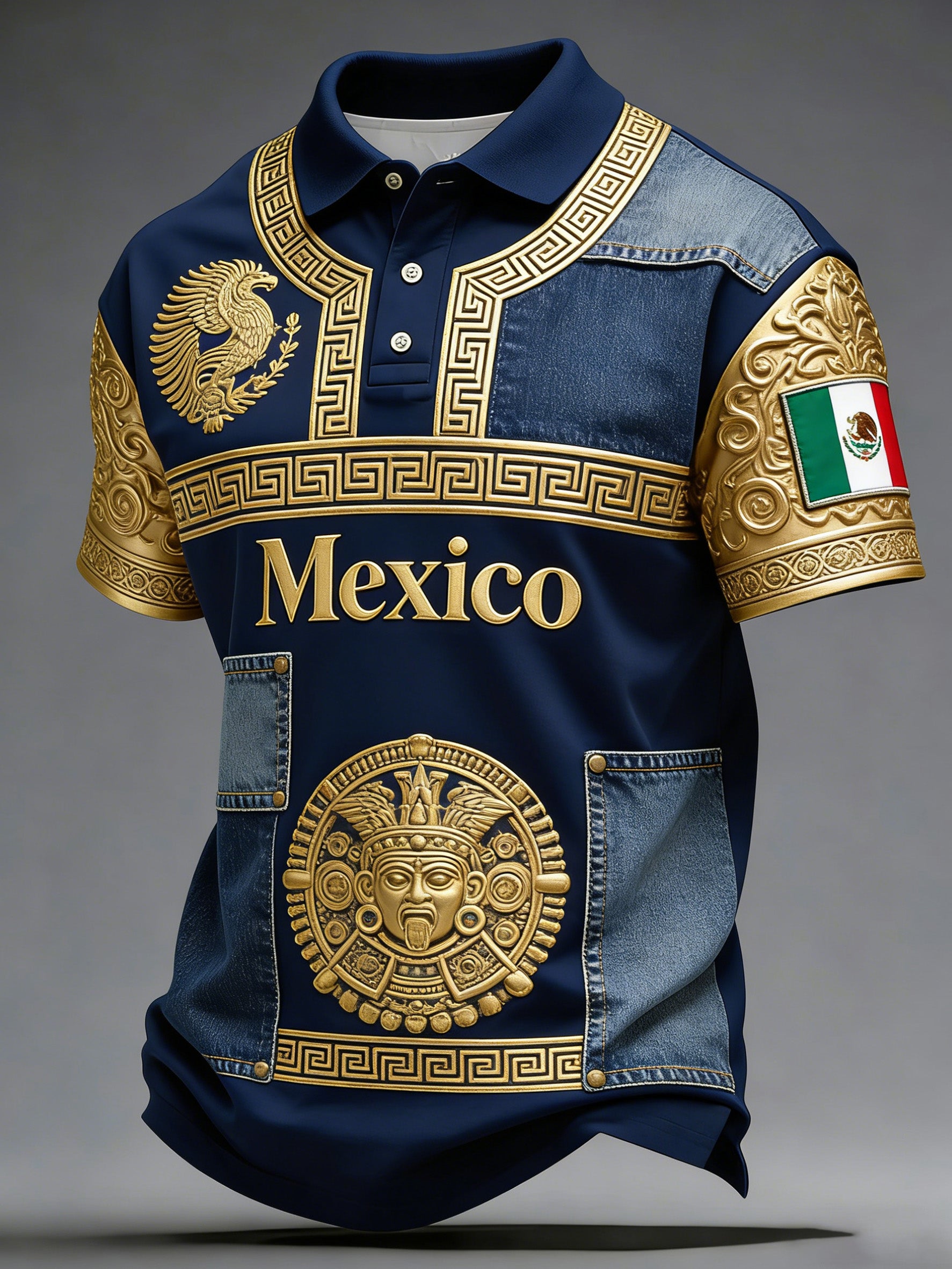 Men's Polo Shirt Featuring Mexican Football And Ancient Civilization Totem Art Prints$28.99 USD$43.00 USD