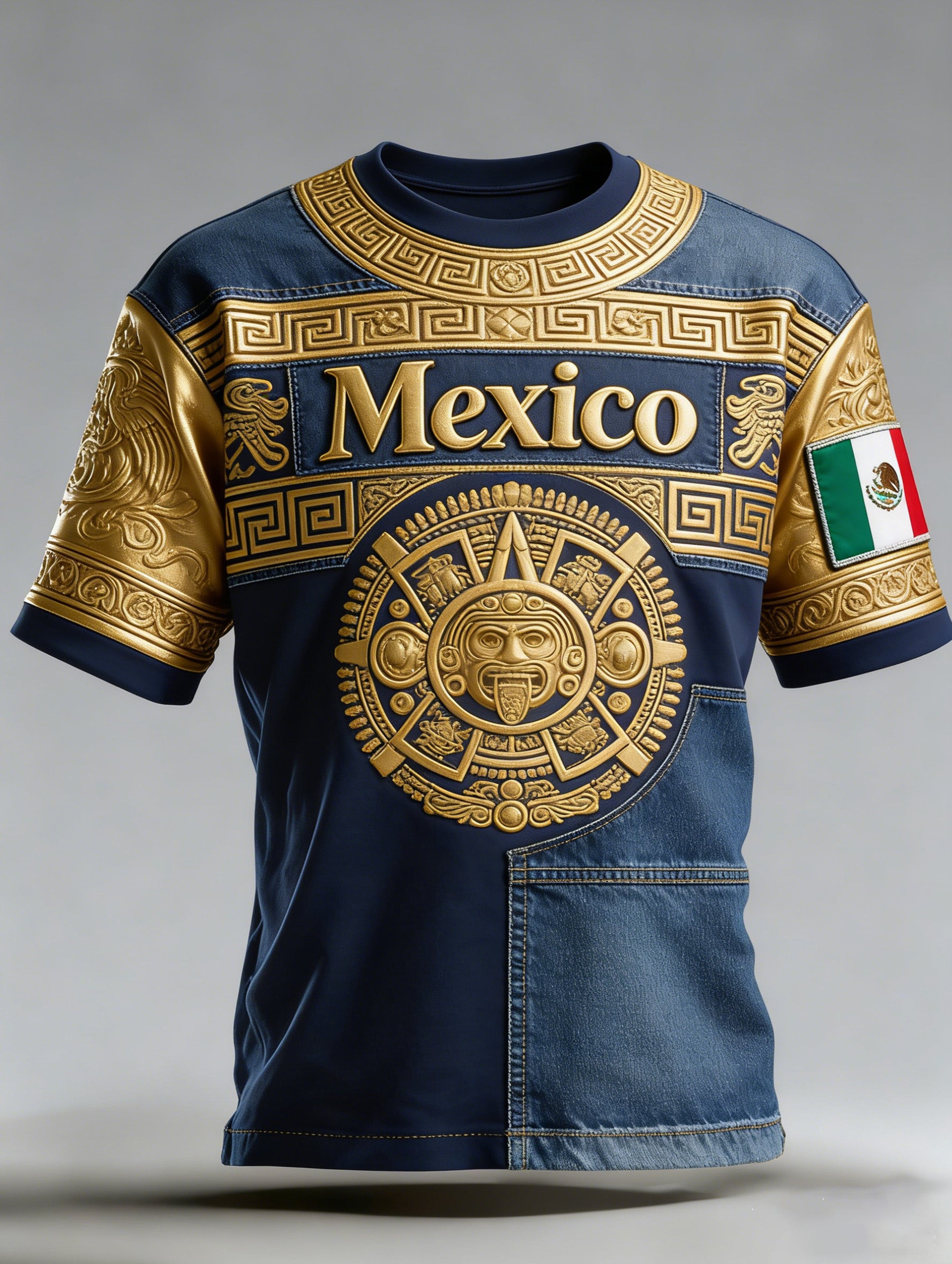 Men's T-Shirt Featuring Mexican Football And Ancient Civilization Totem Art Prints$24.99 USD$37.00 USD