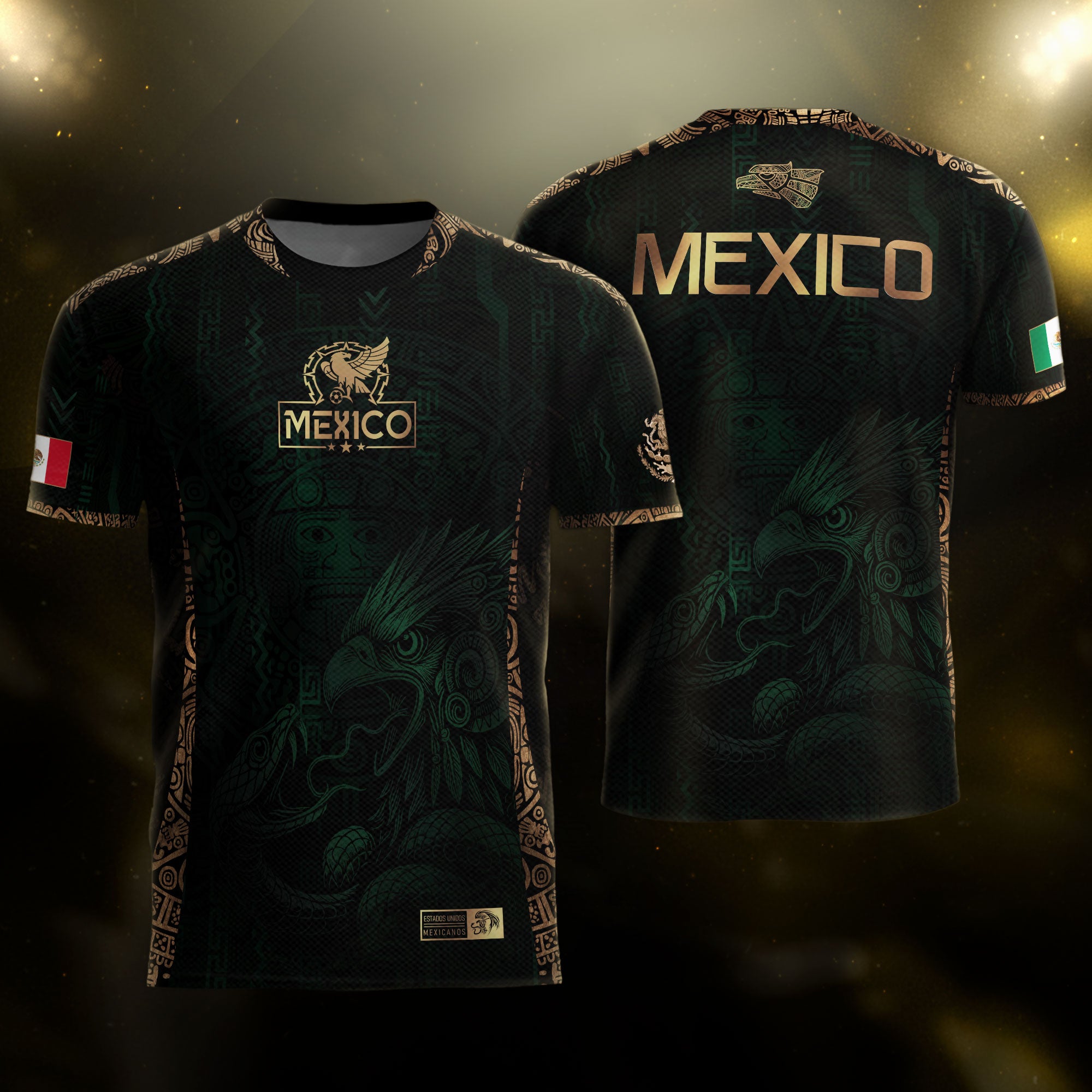 Mexico Soccer Jersey Black Gold Eagle & Snake Aztec Design$25.99 USD$30.99 USD