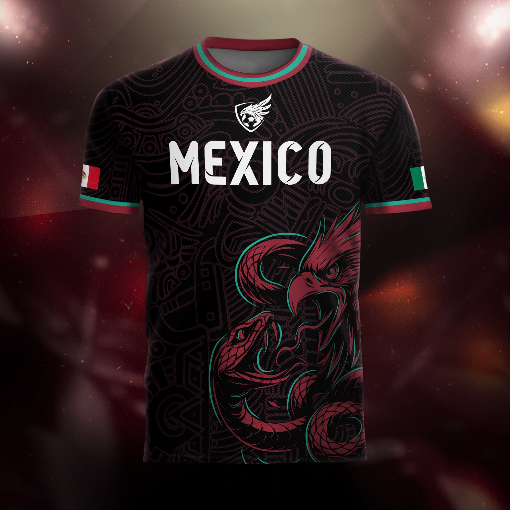 Mexico Black Red Aztec Eagle And Serpent Soccer Jersey$25.99 USD$30.99 USD