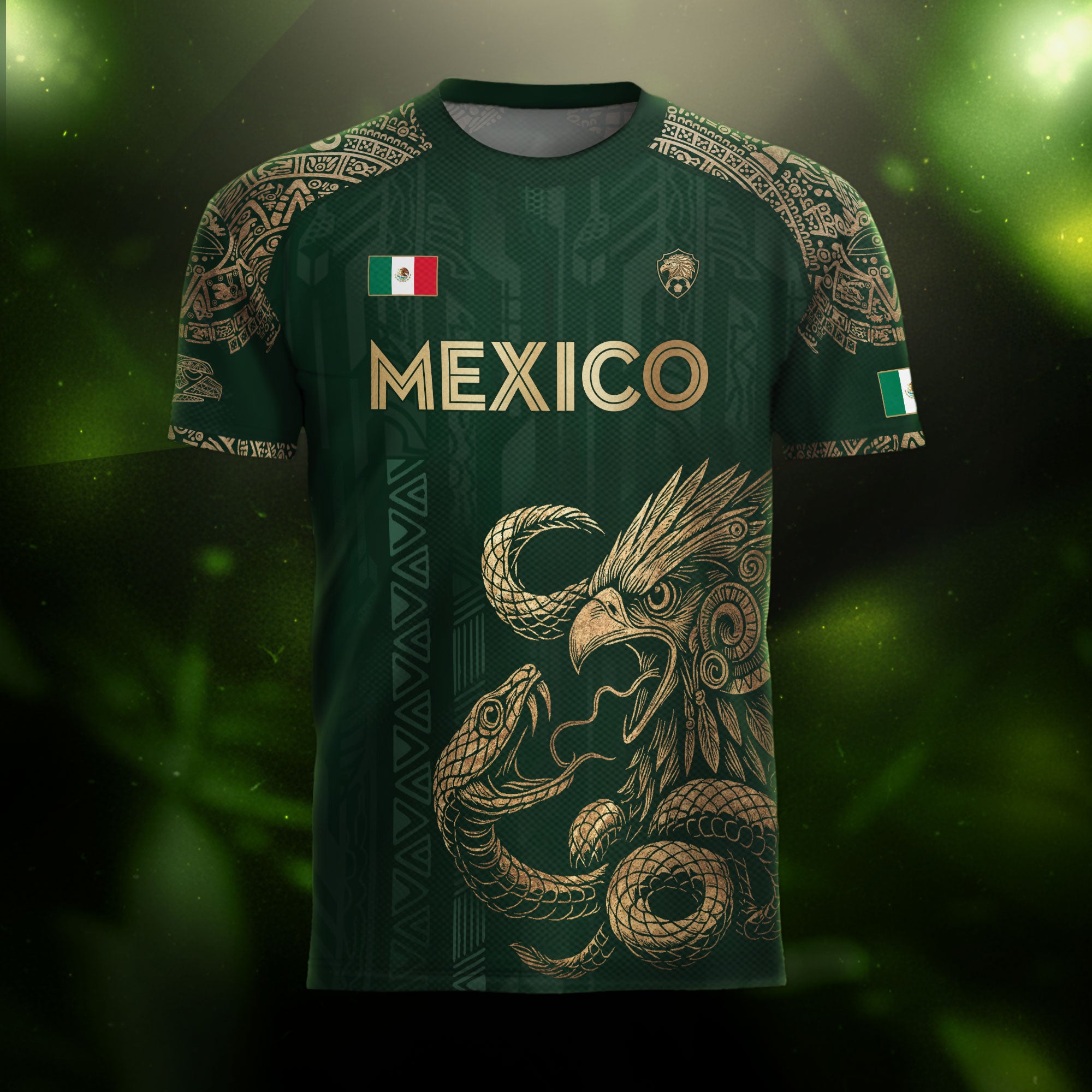 Mexico Soccer Jersey Black Green Gold Aztec Heritage Design$25.99 USD$30.99 USD