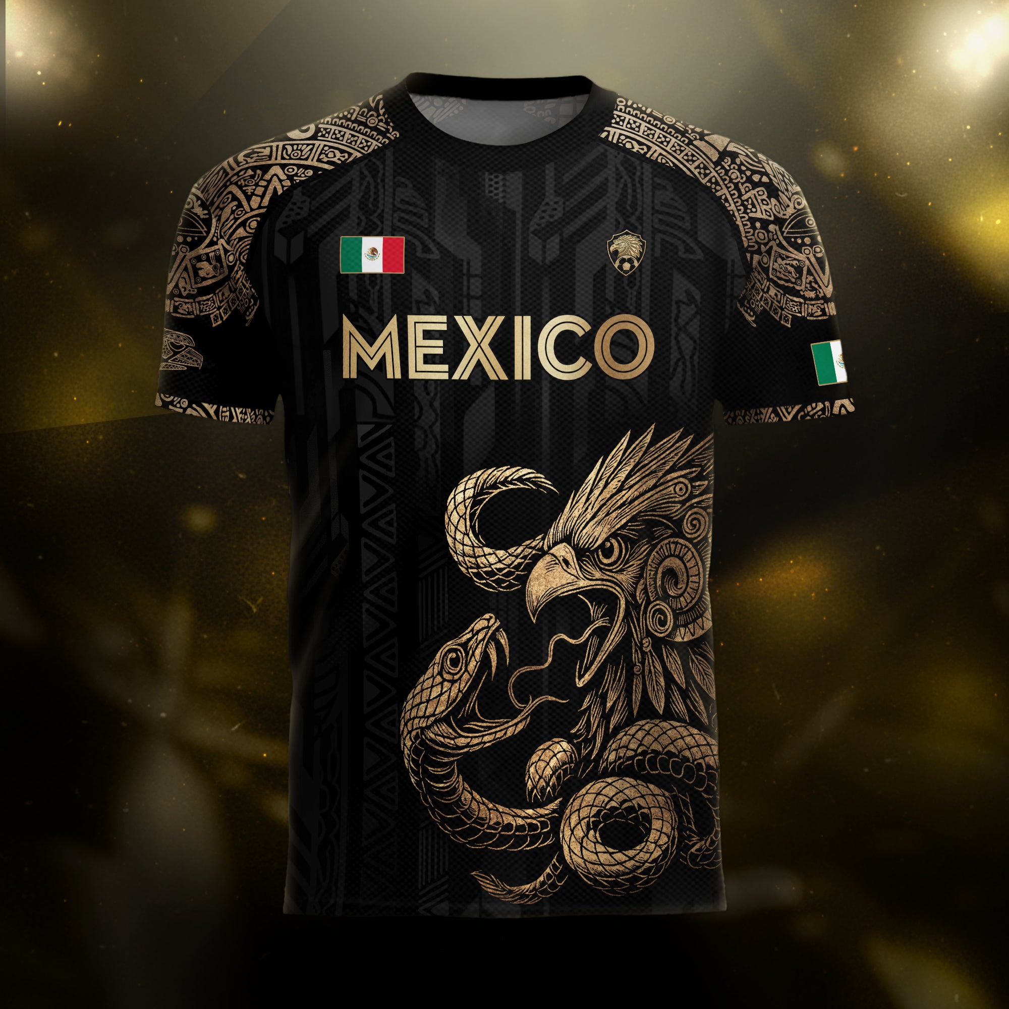 Mexico Soccer Jersey Black Gold Eagle Serpent Aztec Design$25.99 USD$30.99 USD