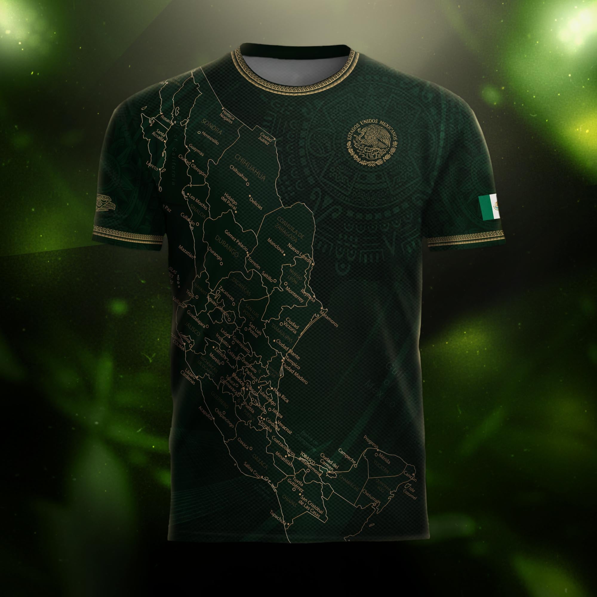 Mexico Green Map Design Aztec Heritage Pride Soccer Jersey$25.99 USD$30.99 USD