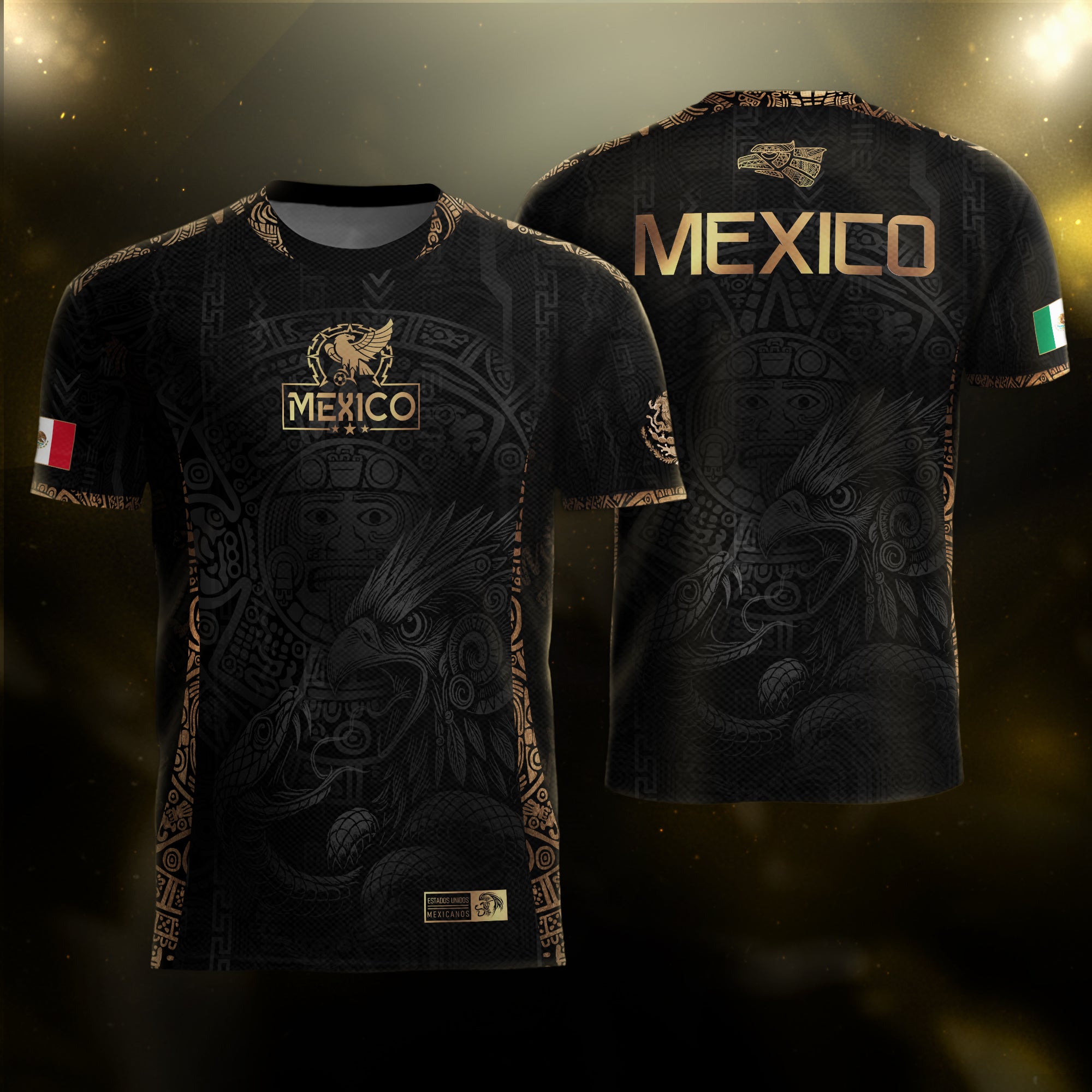 Mexico Black Gold Eagle Aztec Warrior Heritage Soccer Jersey Bundle$25.99 USD$30.99 USD