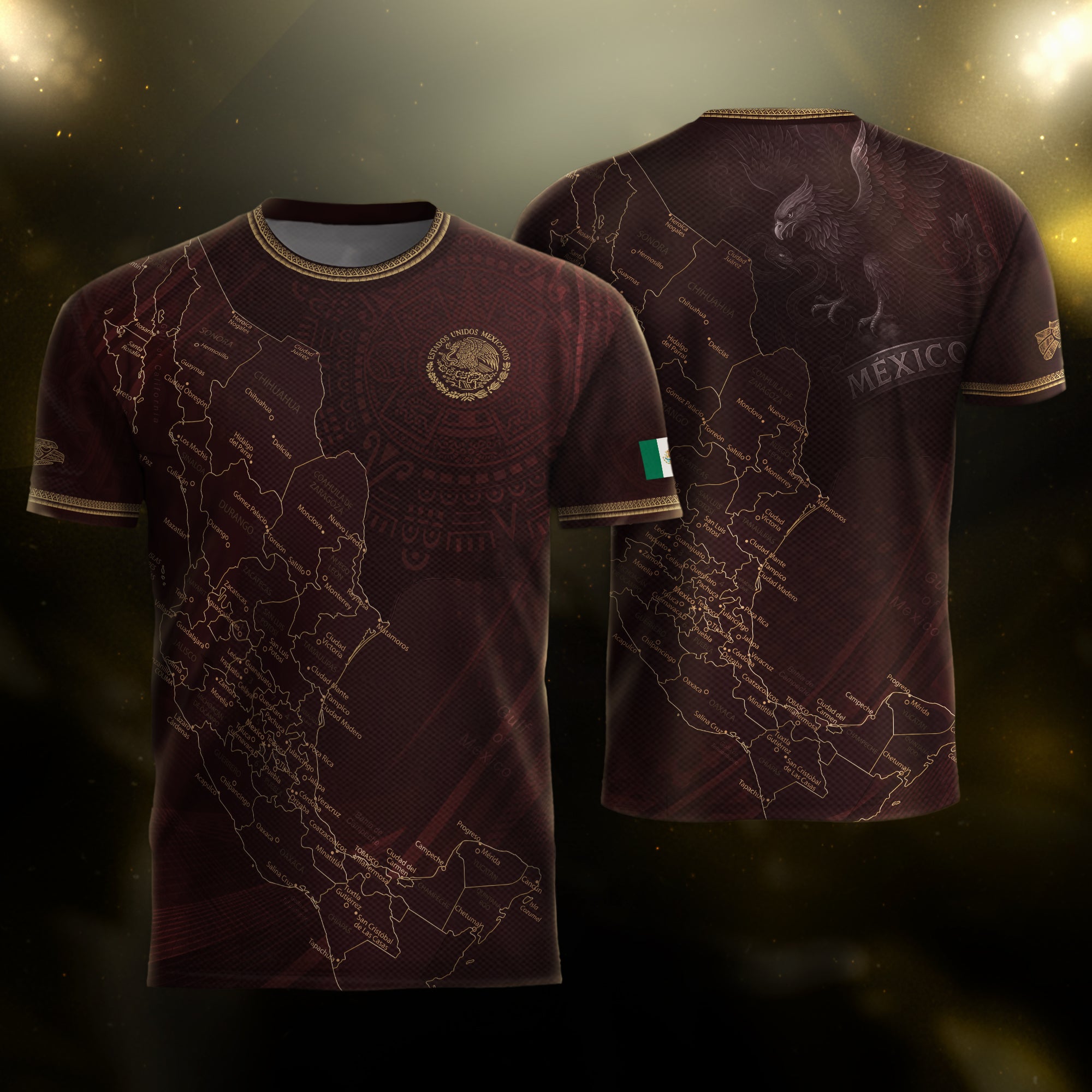 Mexico Burgundy Map Design Aztec Heritage Pride Soccer Jersey$25.99 USD$30.99 USD