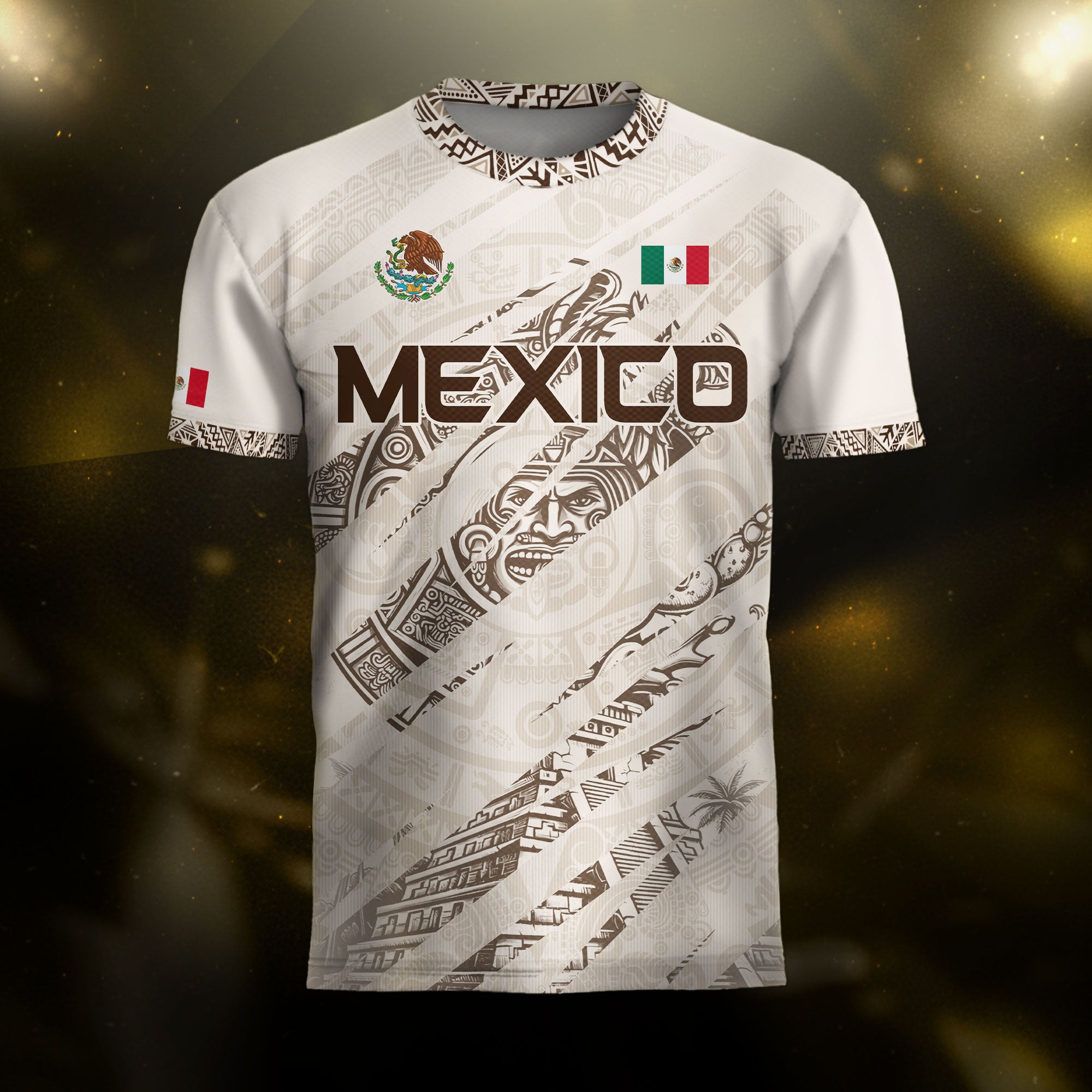Mexico Beige Aztec Warrior Pyramid Heritage Mens Football Soccer Jersey$25.99 USD$30.99 USD