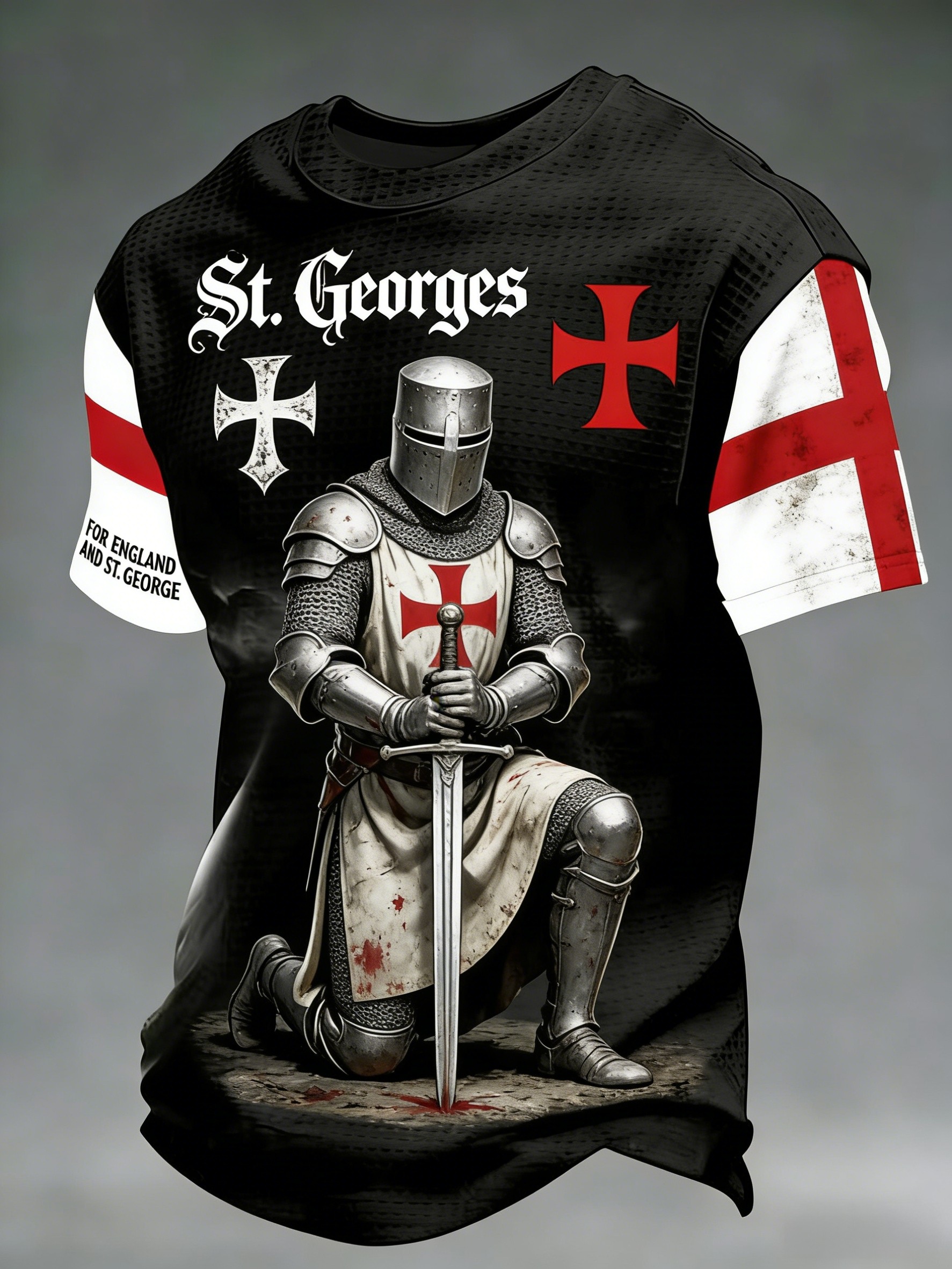 Men's Retro St George's Day Casual Waffle Short-Sleeve T-Shirt