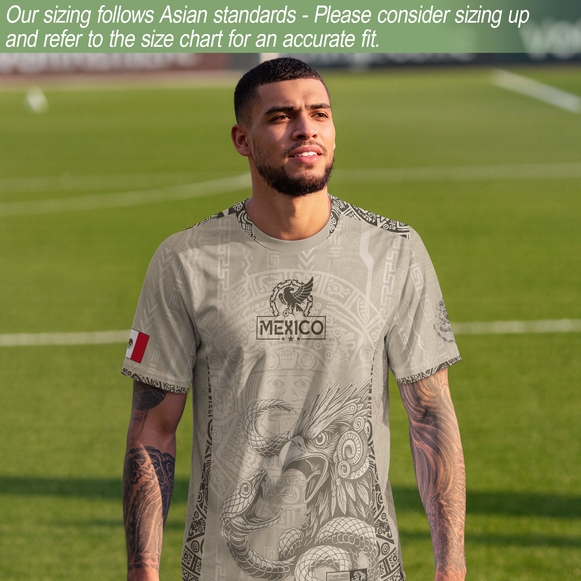 Honor Mexico’s legacy with this beige Aztec Sunstone eagle jersey — cultural detail, bold art, and timeless national pride.