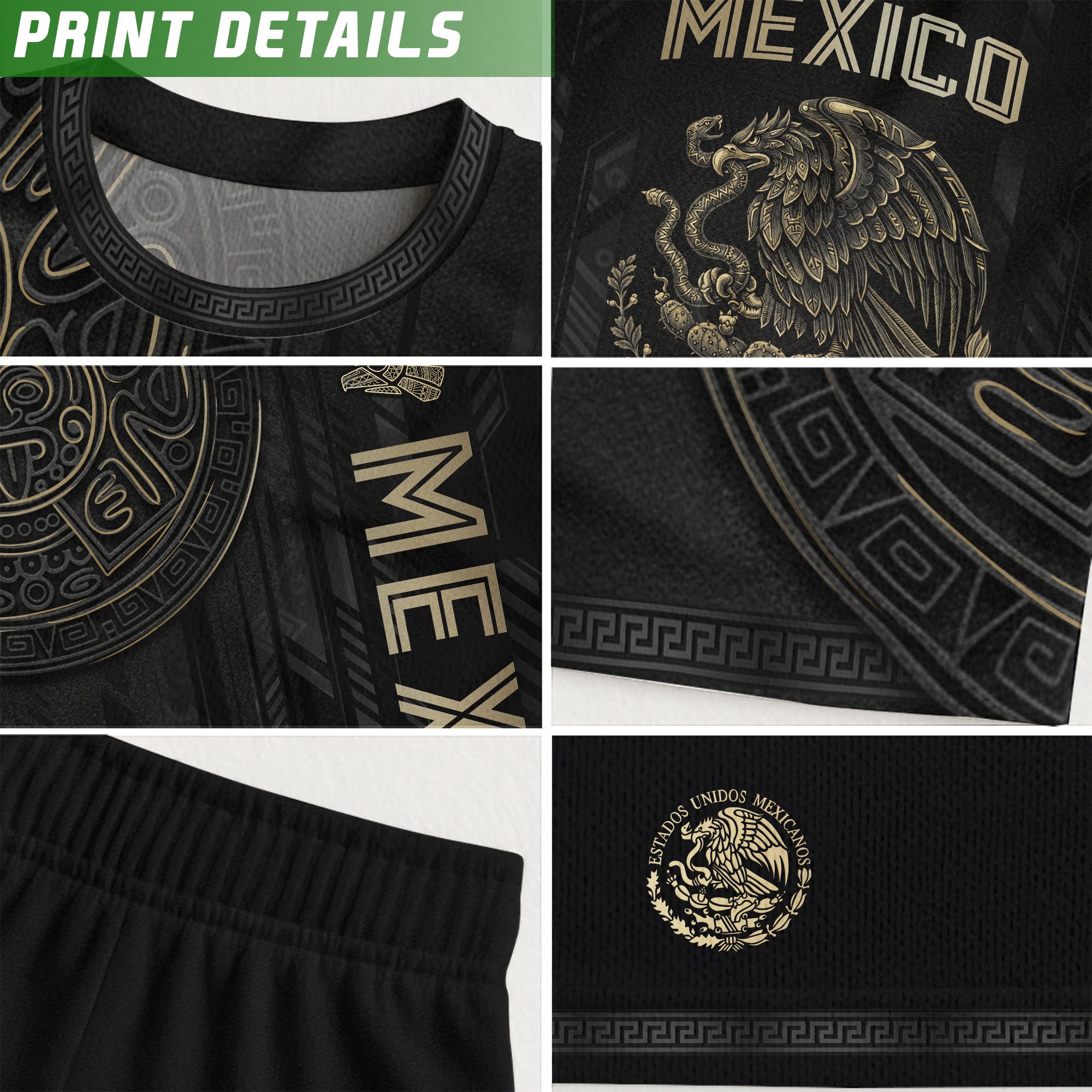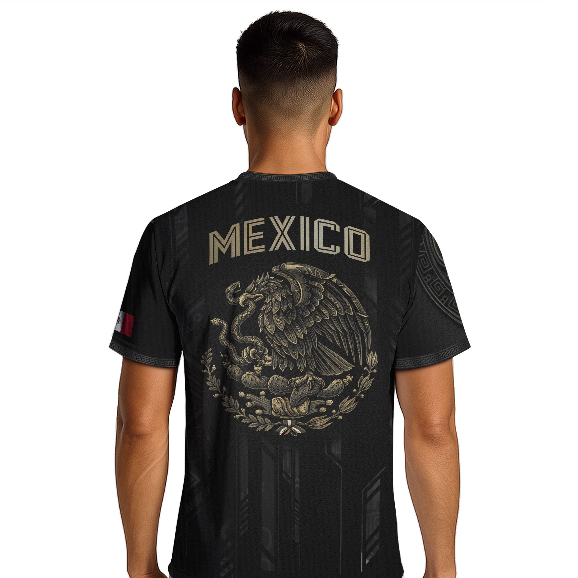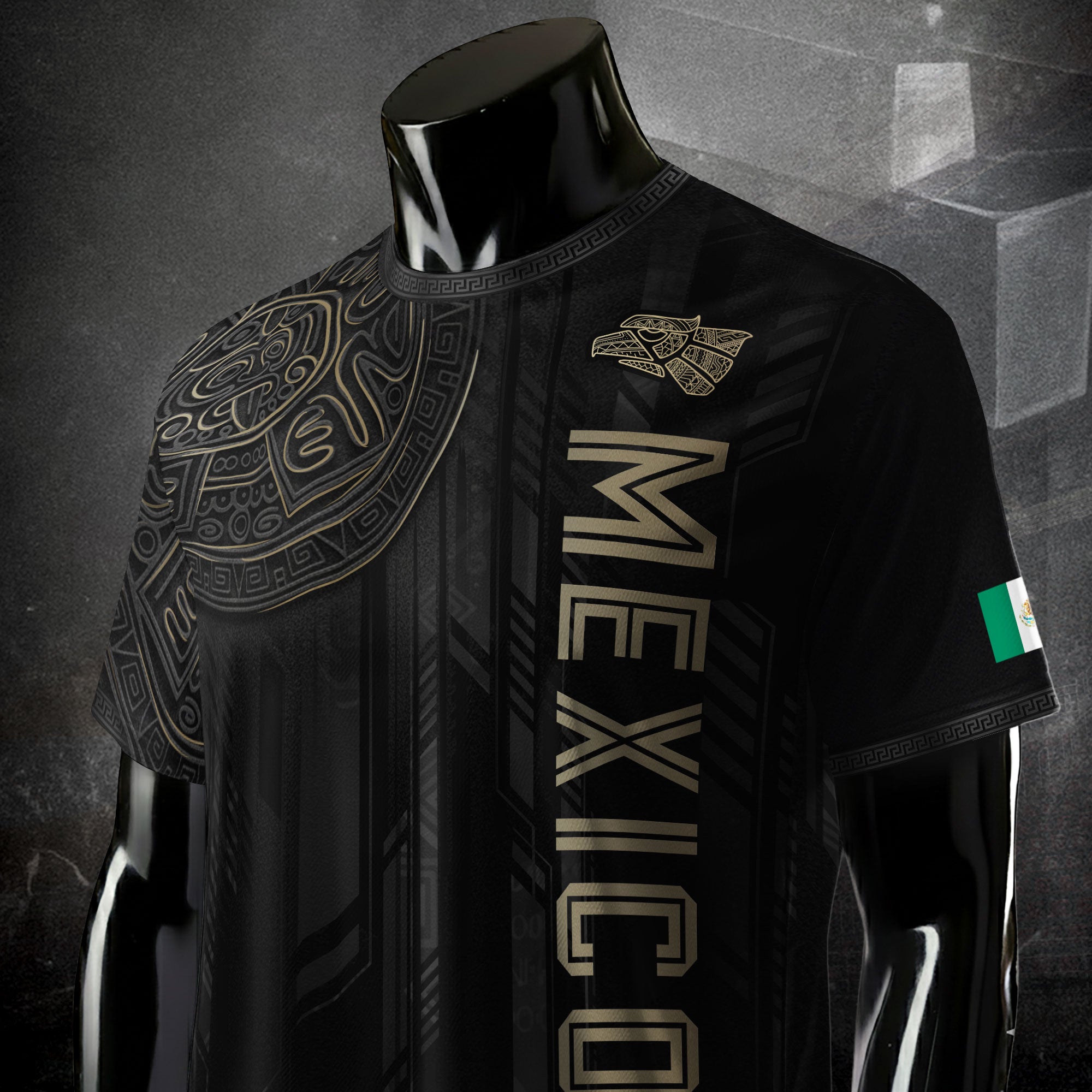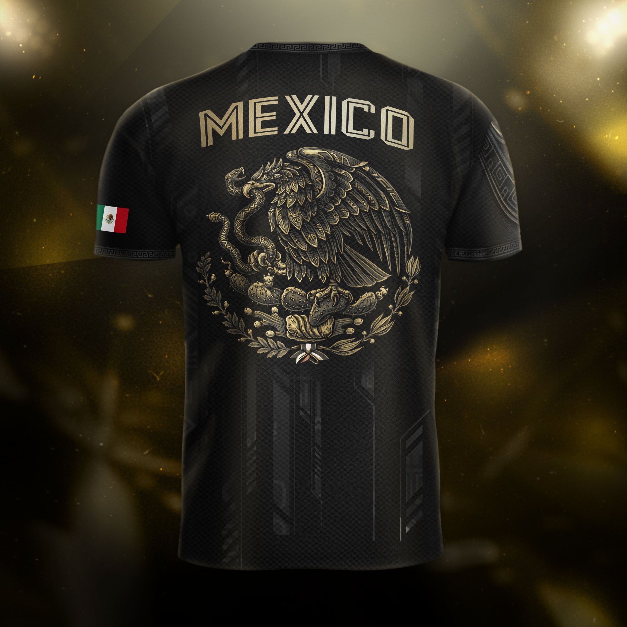 Honor Mexico’s ancient culture with this Black Gold Aztec Mayan Calendar Eagle Soccer Jersey featuring powerful heritage symbols. Made from high-quality polyester that is soft, lightweight, breathable, and quick-drying, it offers all-day comfort for training, matches, and casual wear.