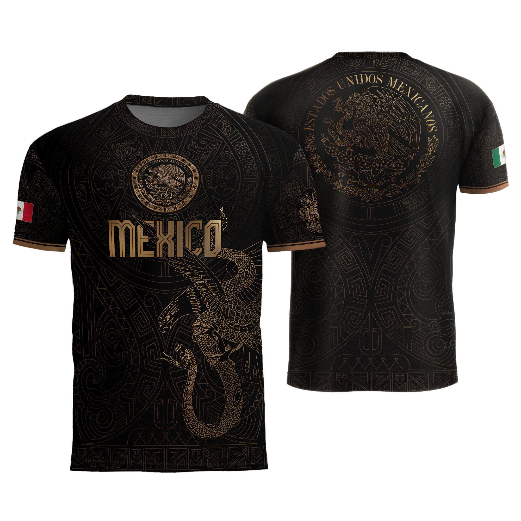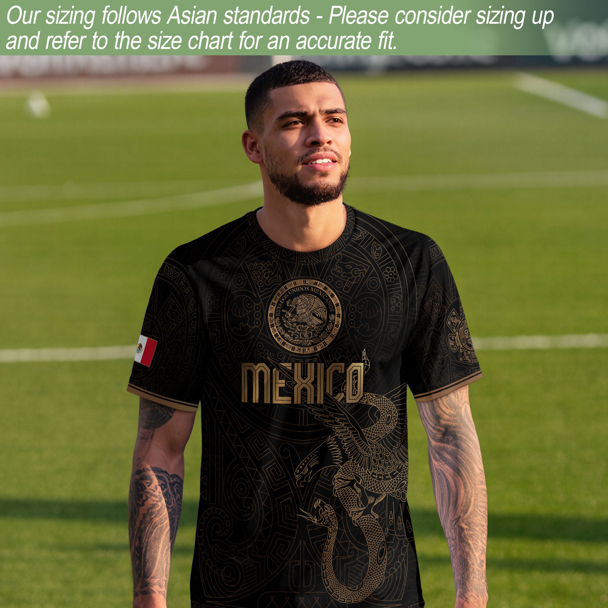Honor Mexico’s national symbolism with this Black Gold Eagle Snake Soccer Jersey representing strength, tradition, and cultural pride. Made from high-quality polyester that is soft, lightweight, breathable, and quick-drying, it ensures comfort and freedom of movement for sports and fan wear.