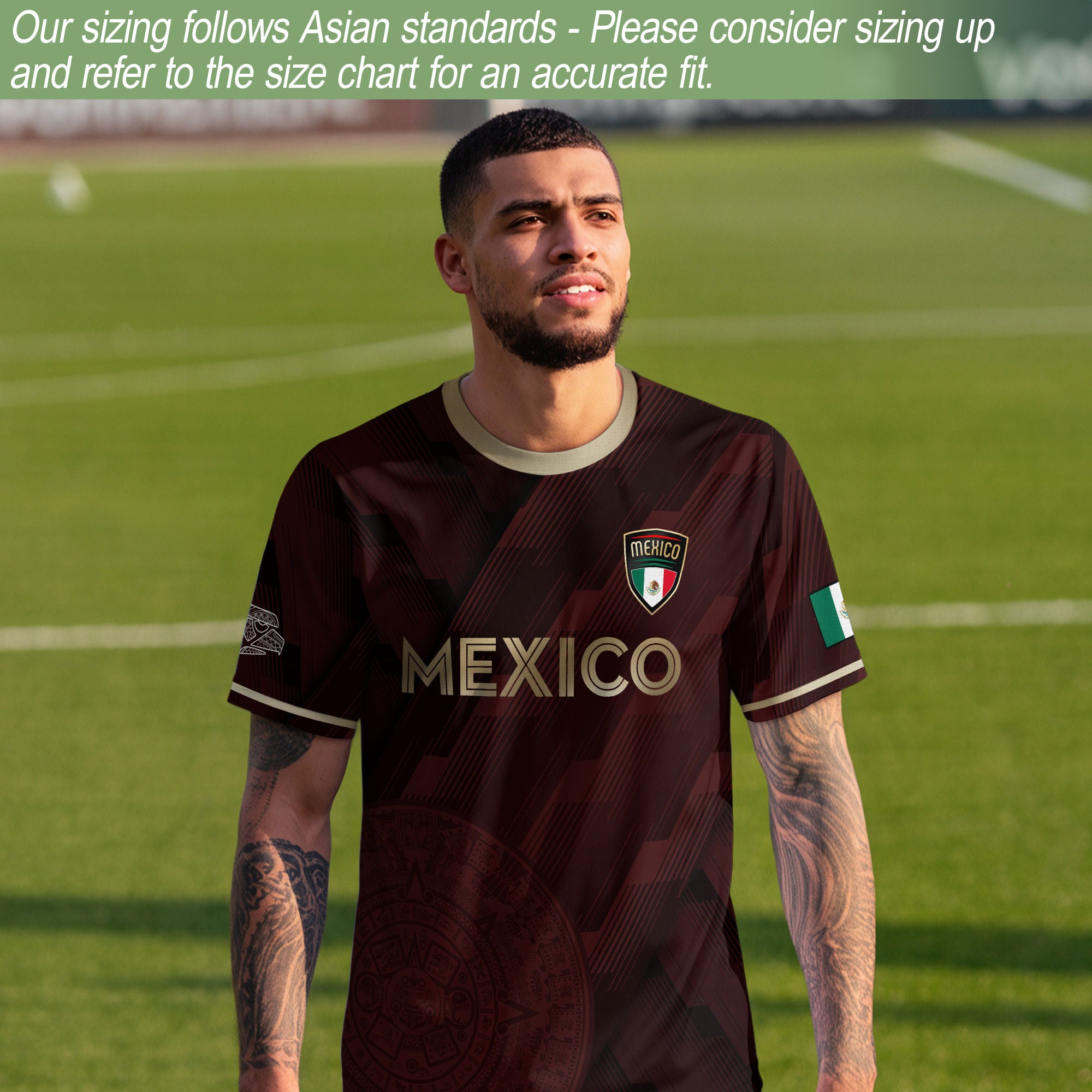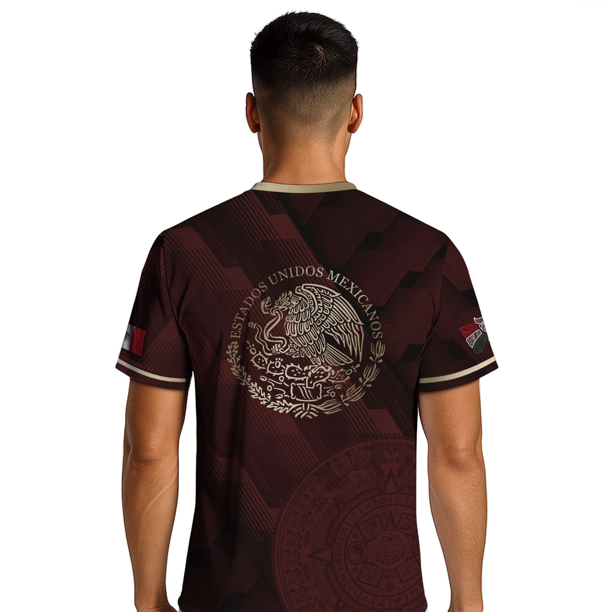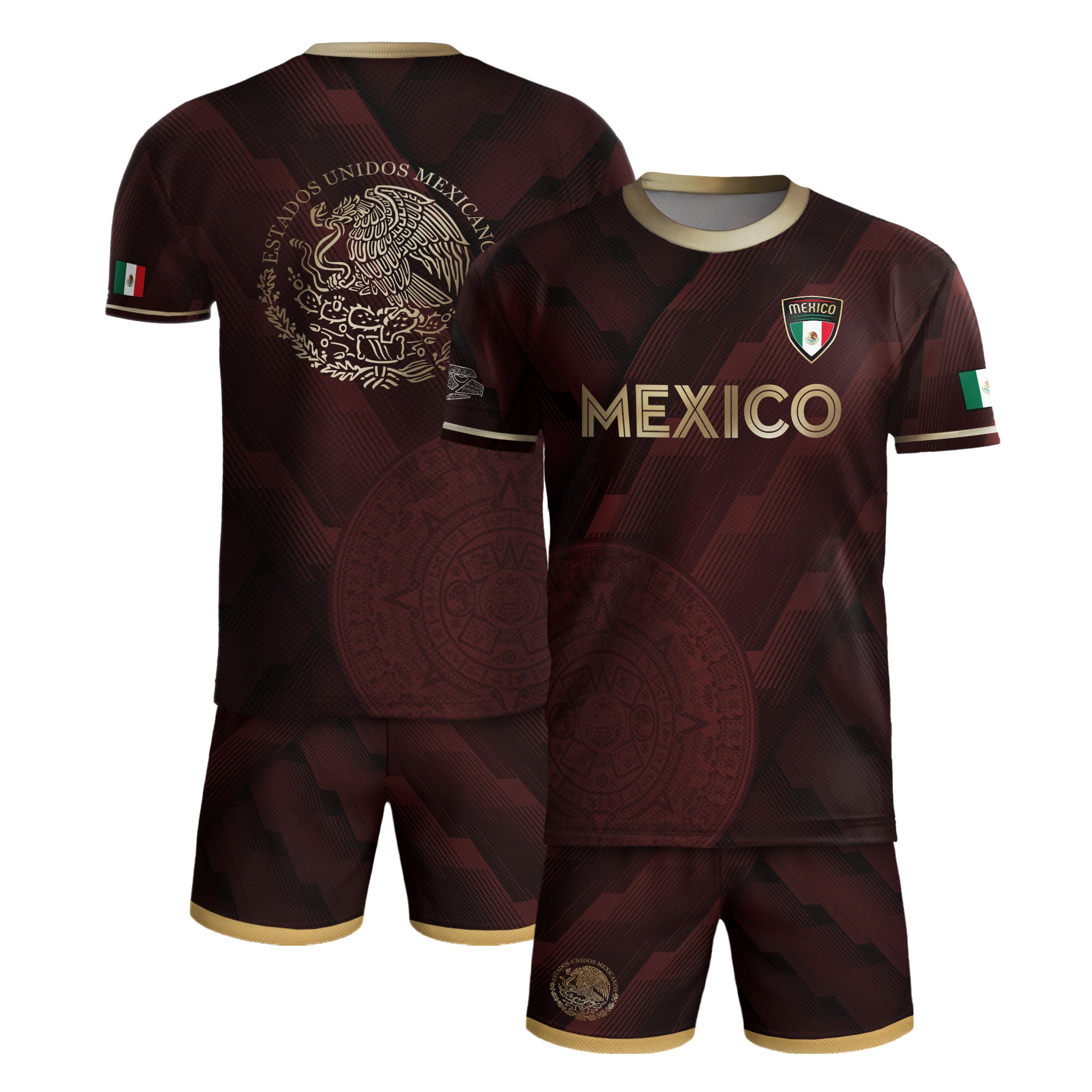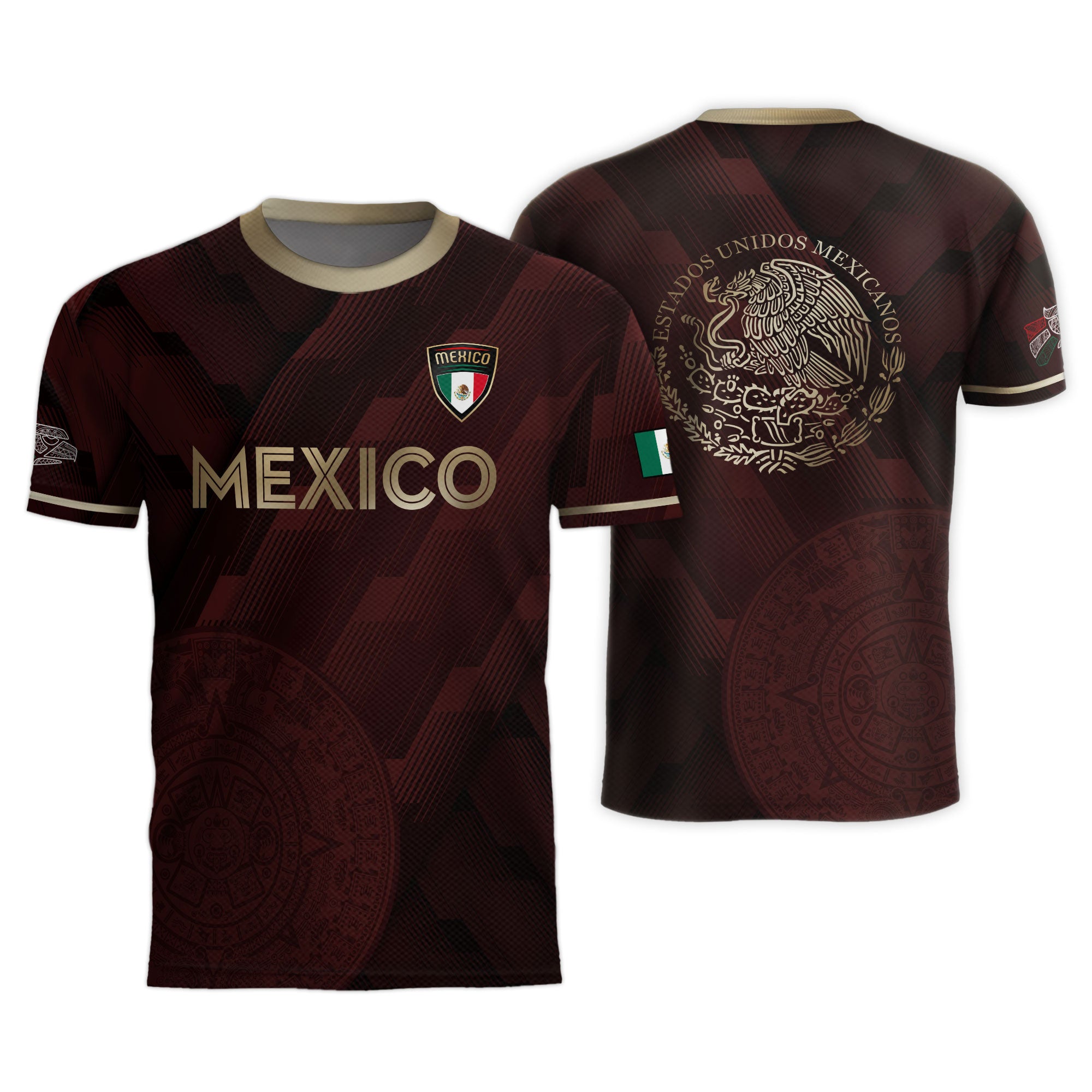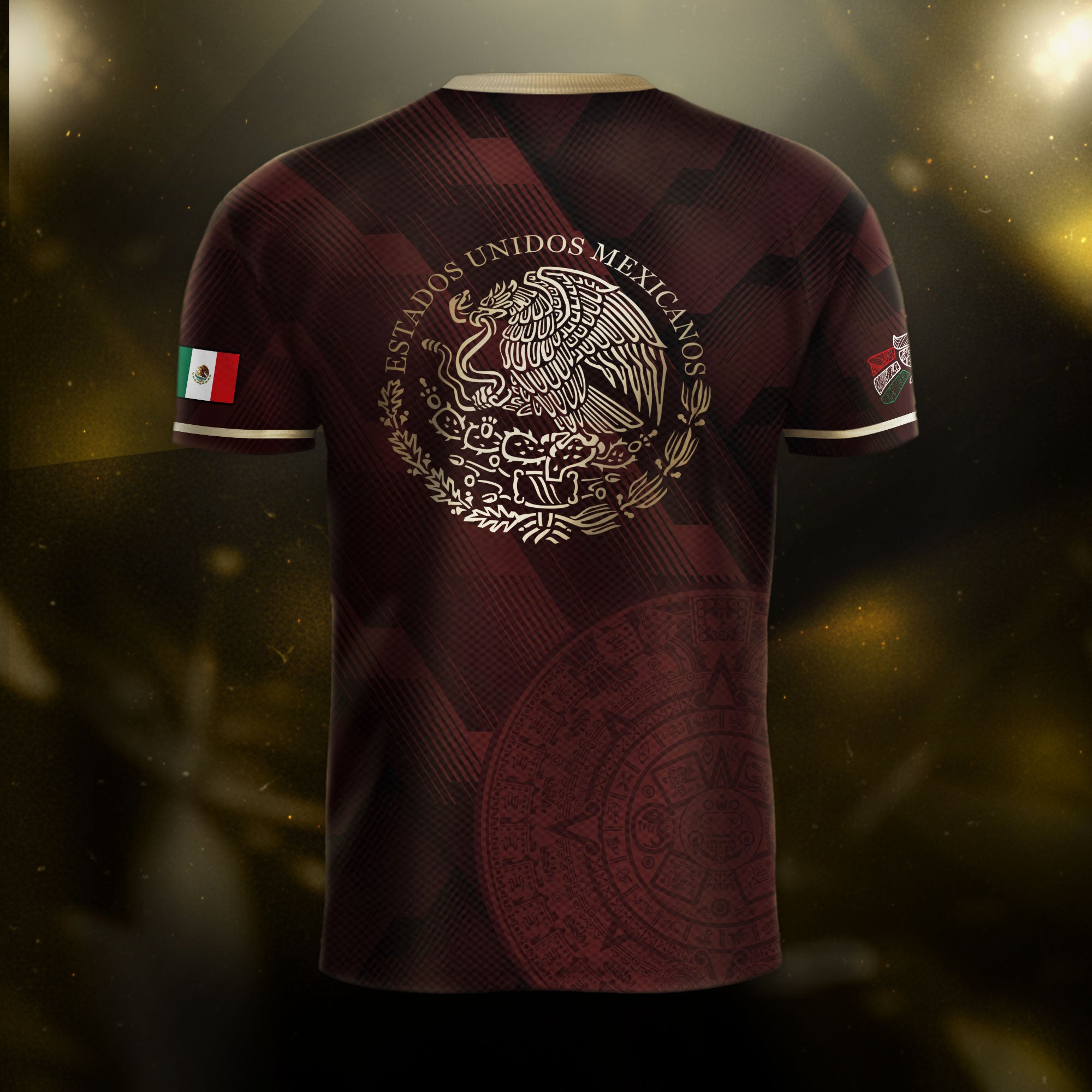 Honor Mexico’s spirit with this maroon soccer jersey featuring golden Aztec details and the national eagle crest — a bold fusion of pride and tradition.