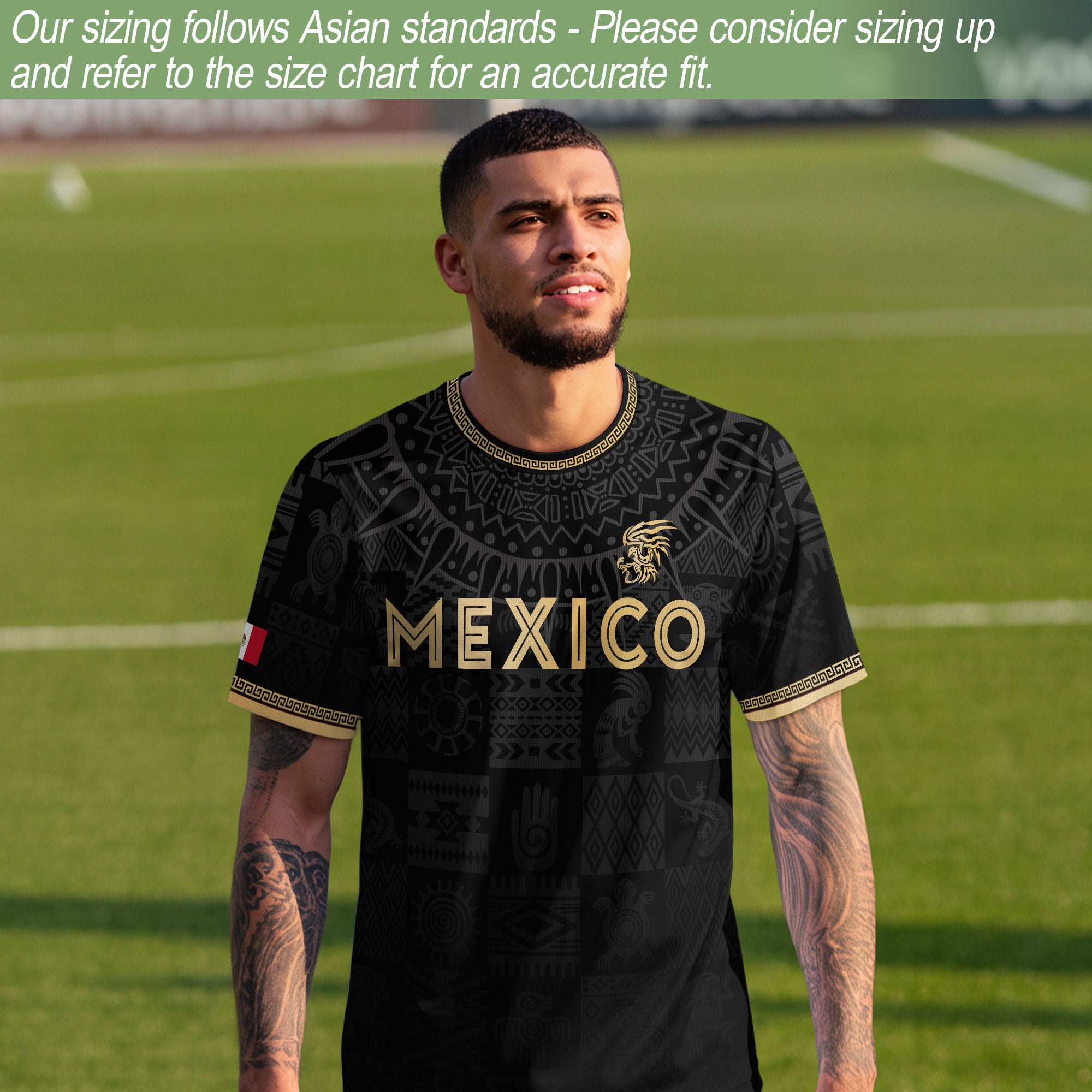 Represent Mexico’s rich history with this Soccer Jersey showcasing the coat of arms alongside ancient Mayan and Aztec symbols. Made from high-quality polyester that is soft, lightweight, breathable, and quick-drying, it ensures comfort and durability for sports and daily wear.