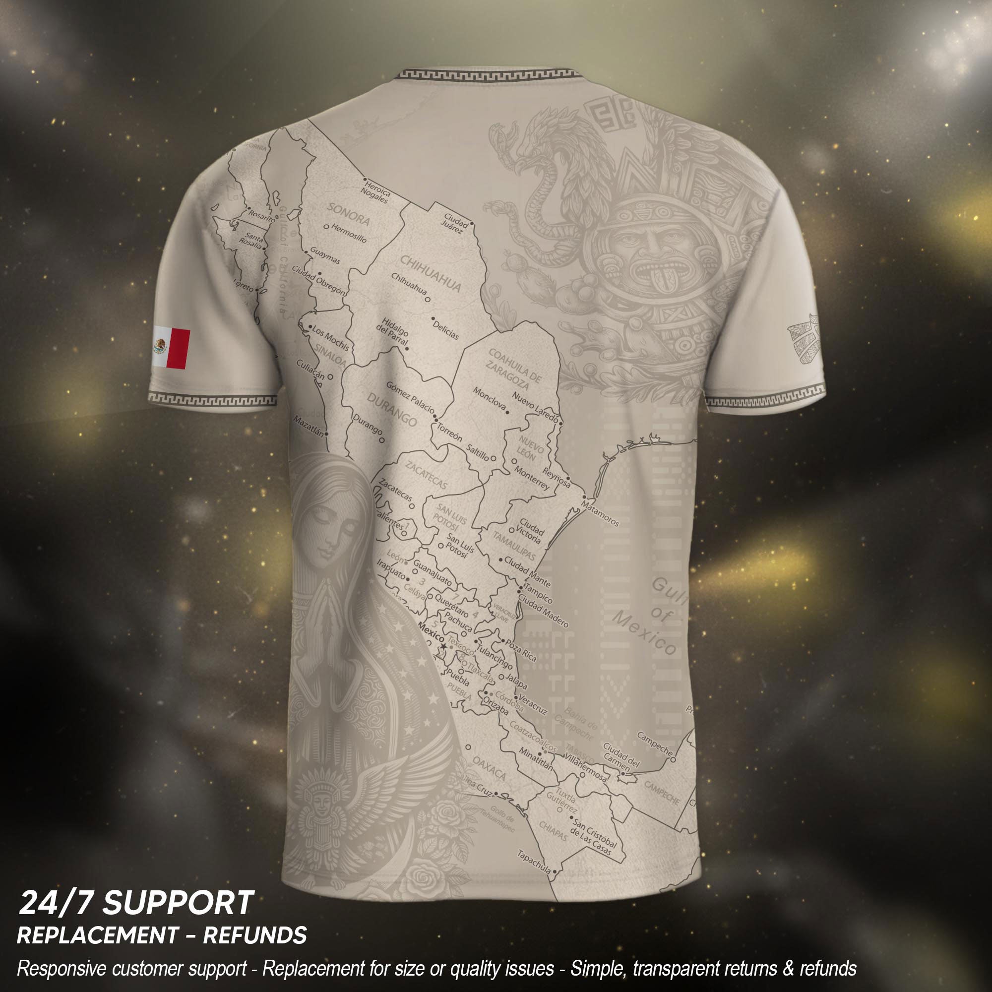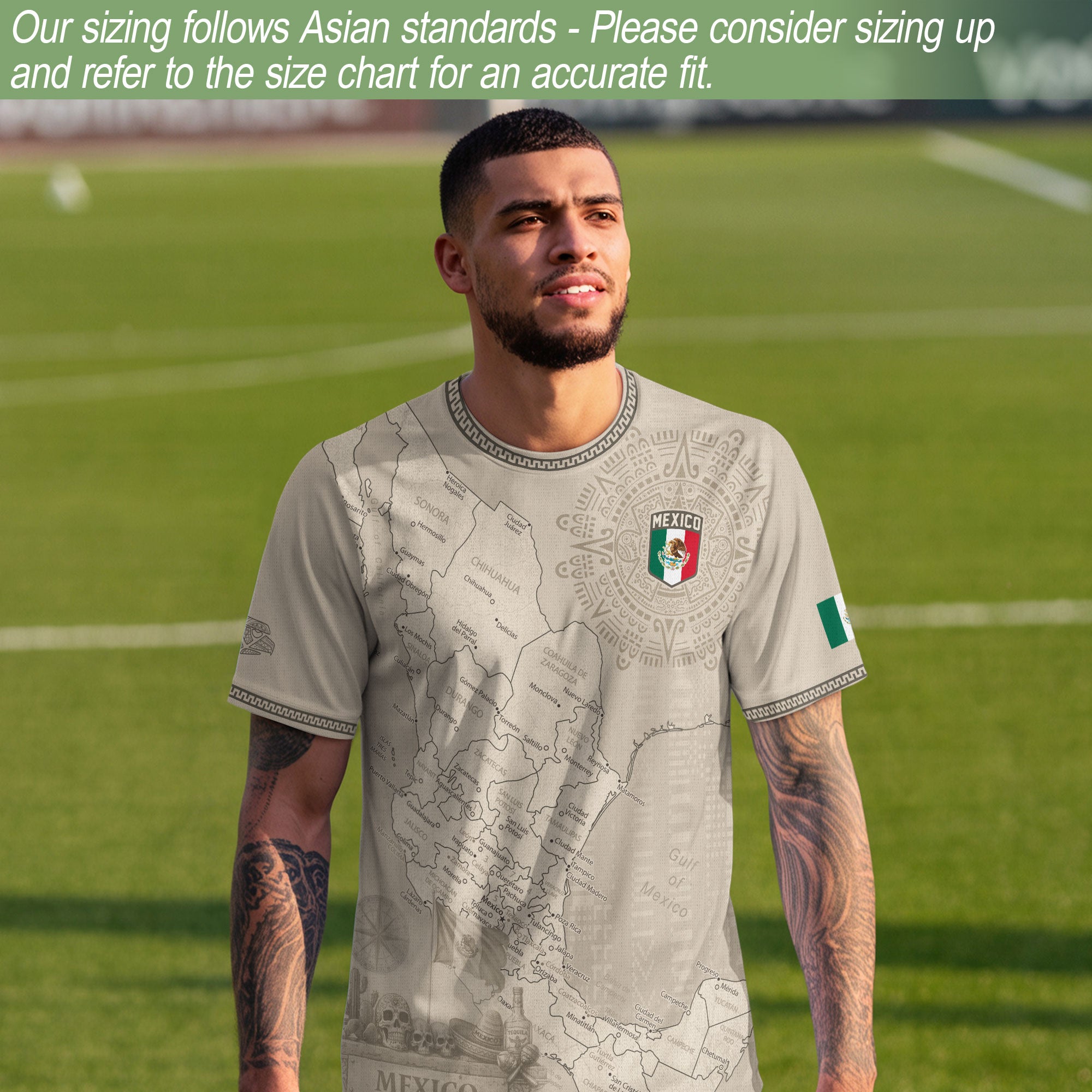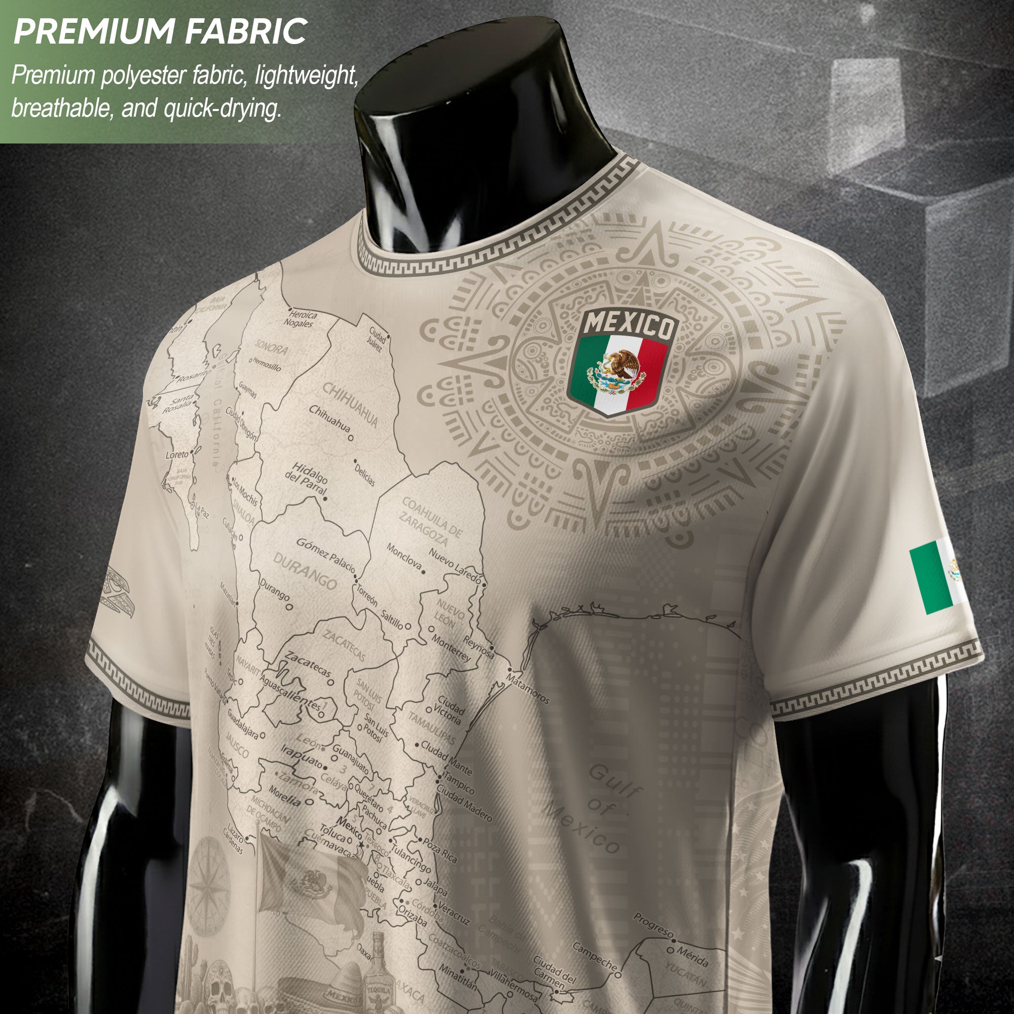 Honor Mexico’s ancient legacy with this Soccer Jersey showcasing the country map and Aztec Calendar as powerful heritage symbols. Made from high-quality polyester that is soft, lightweight, breathable, and quick-drying, it’s ideal for sports, school, and daily wear.