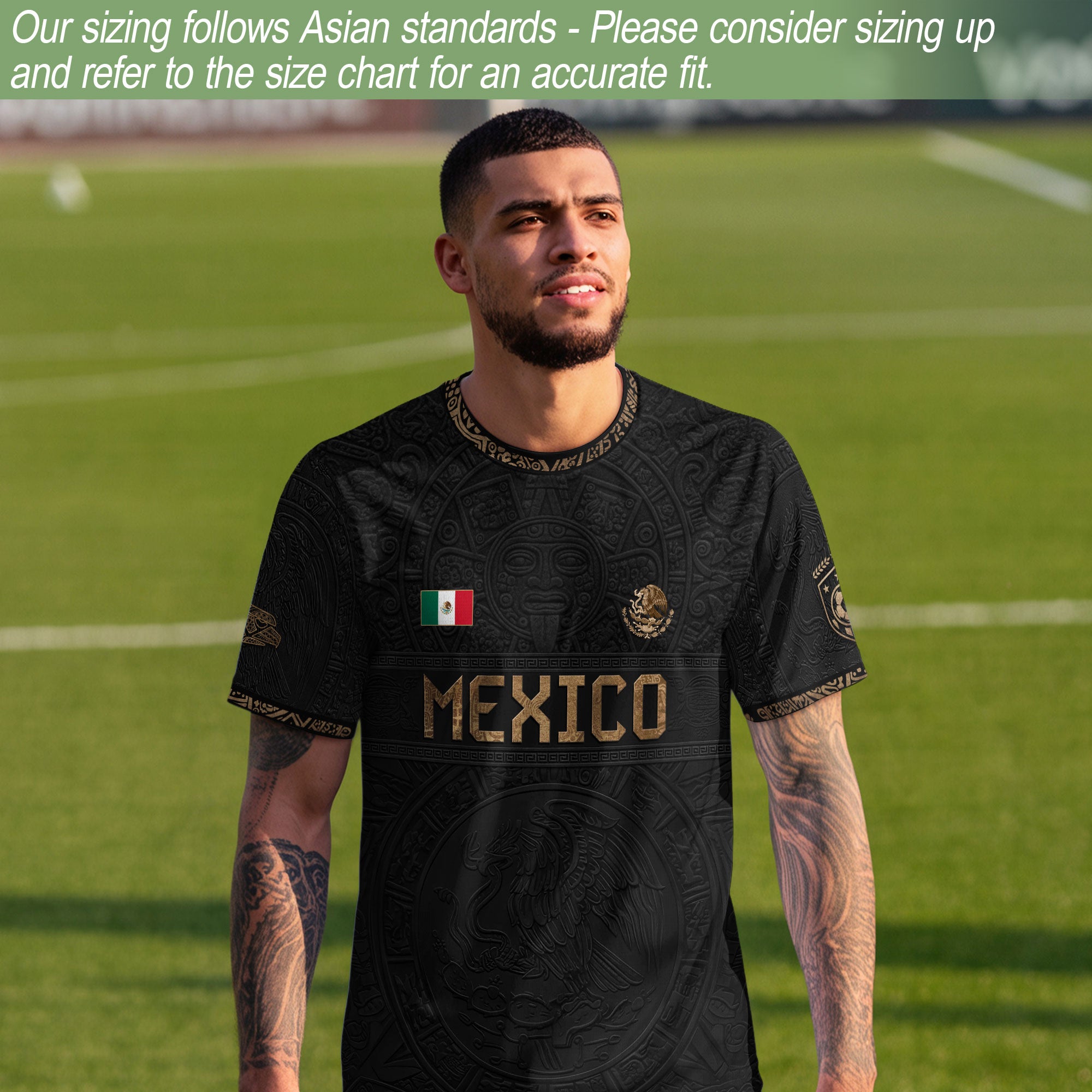 Mexico Heritage Black Bronze Vintage Athletic Aztec Calendar Soccer Jersey
