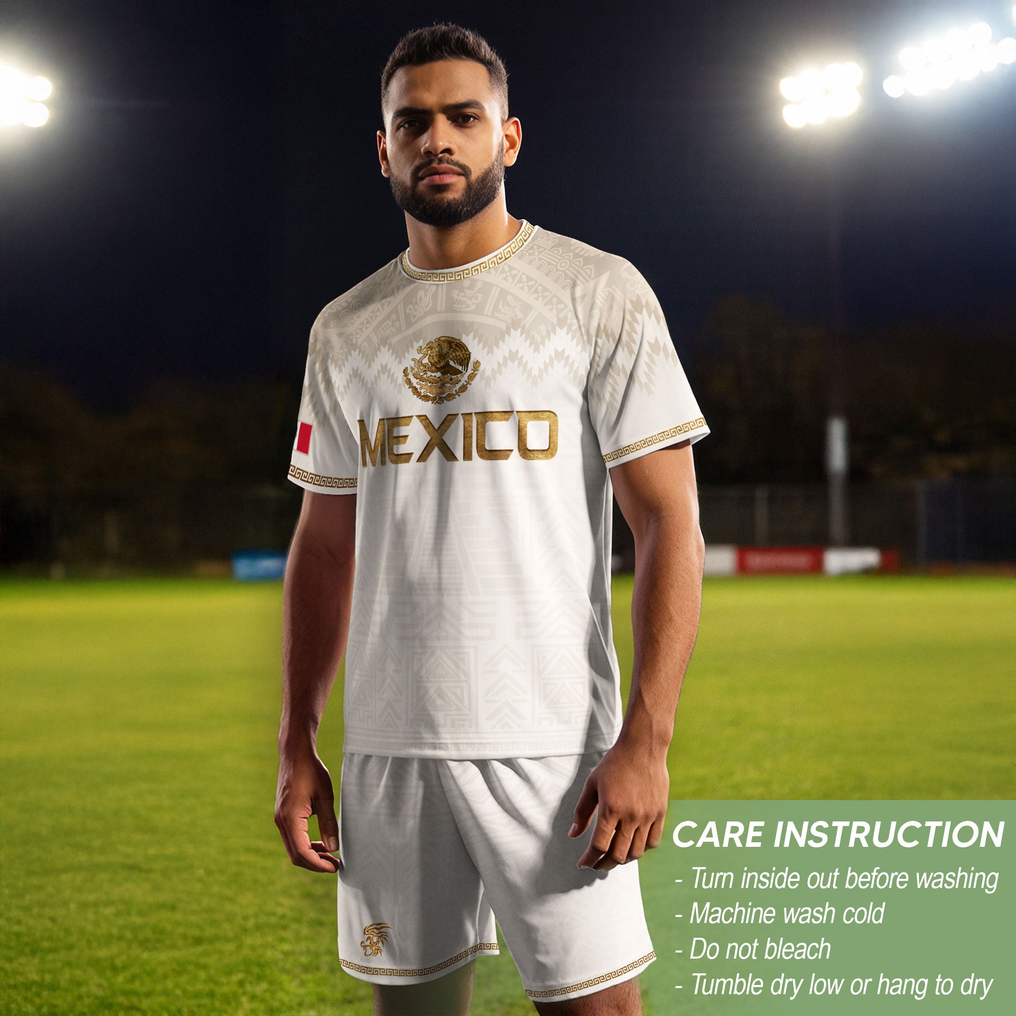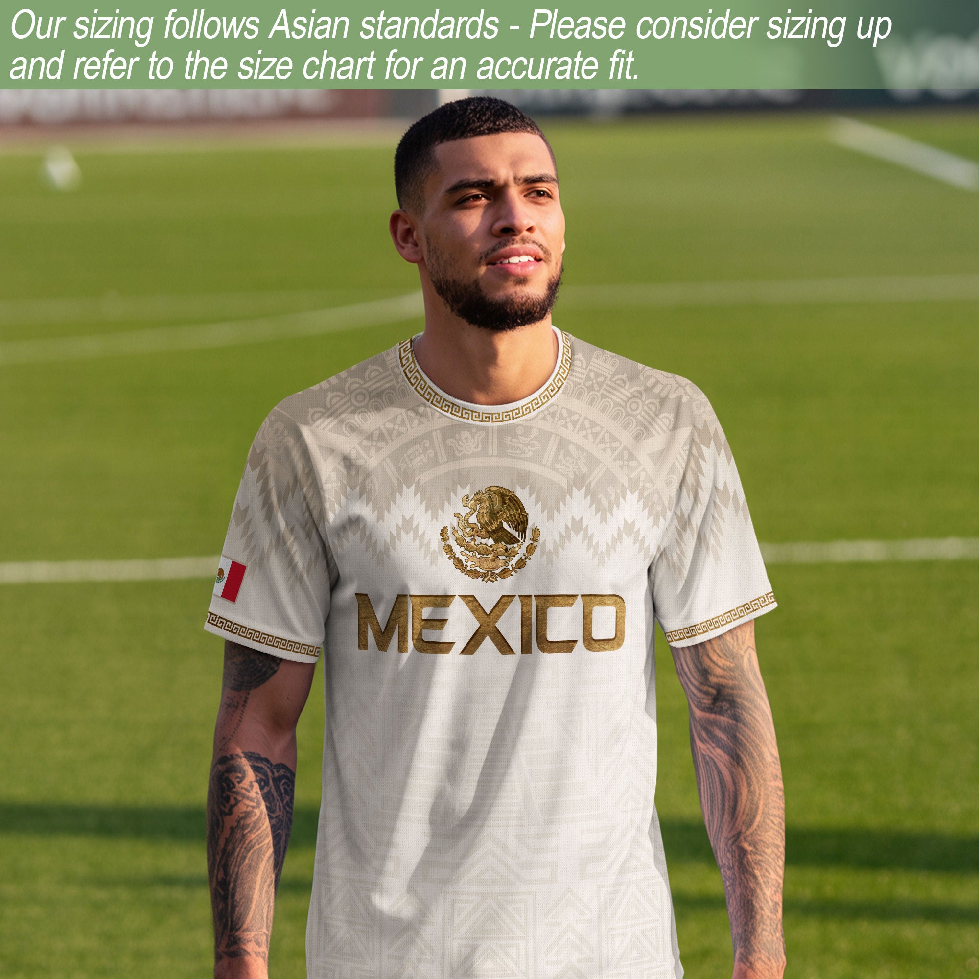 Show Orgullo Mexicano with this Soccer Jersey featuring the Aztec pyramid and Sun Stone as powerful symbols of ancient civilization and national pride. Made from high-quality polyester that is soft, lightweight, breathable, and quick-drying, it provides comfort for sports, training, and everyday wear.