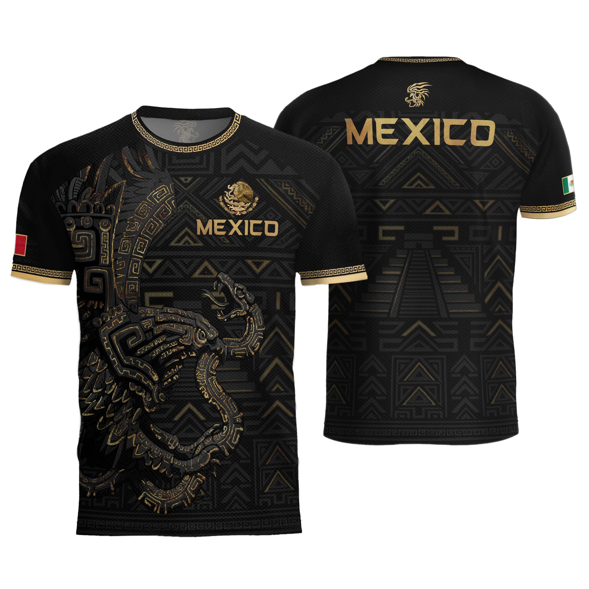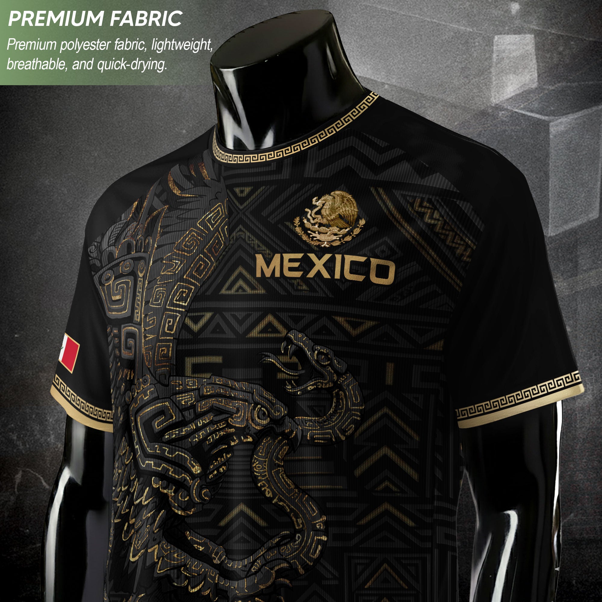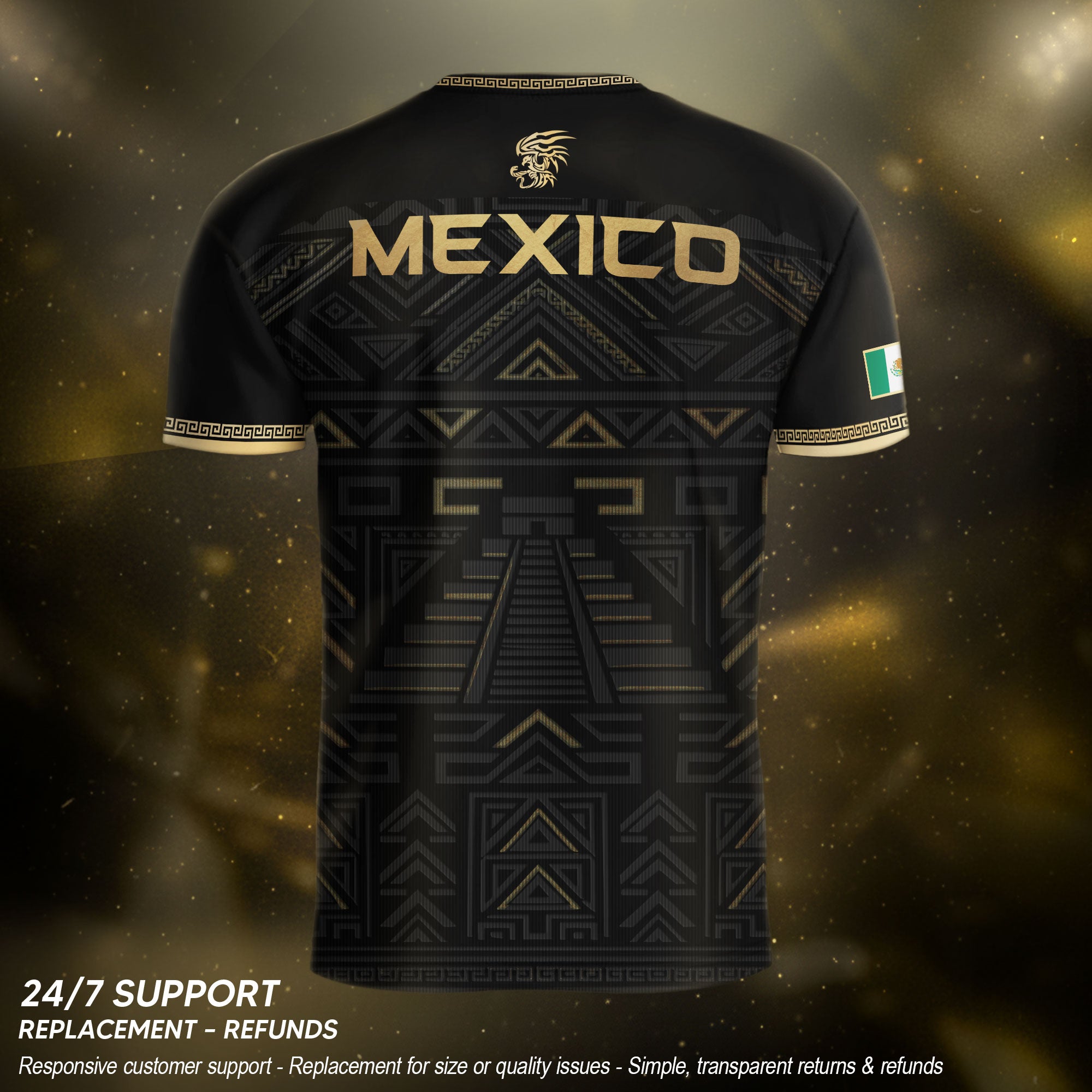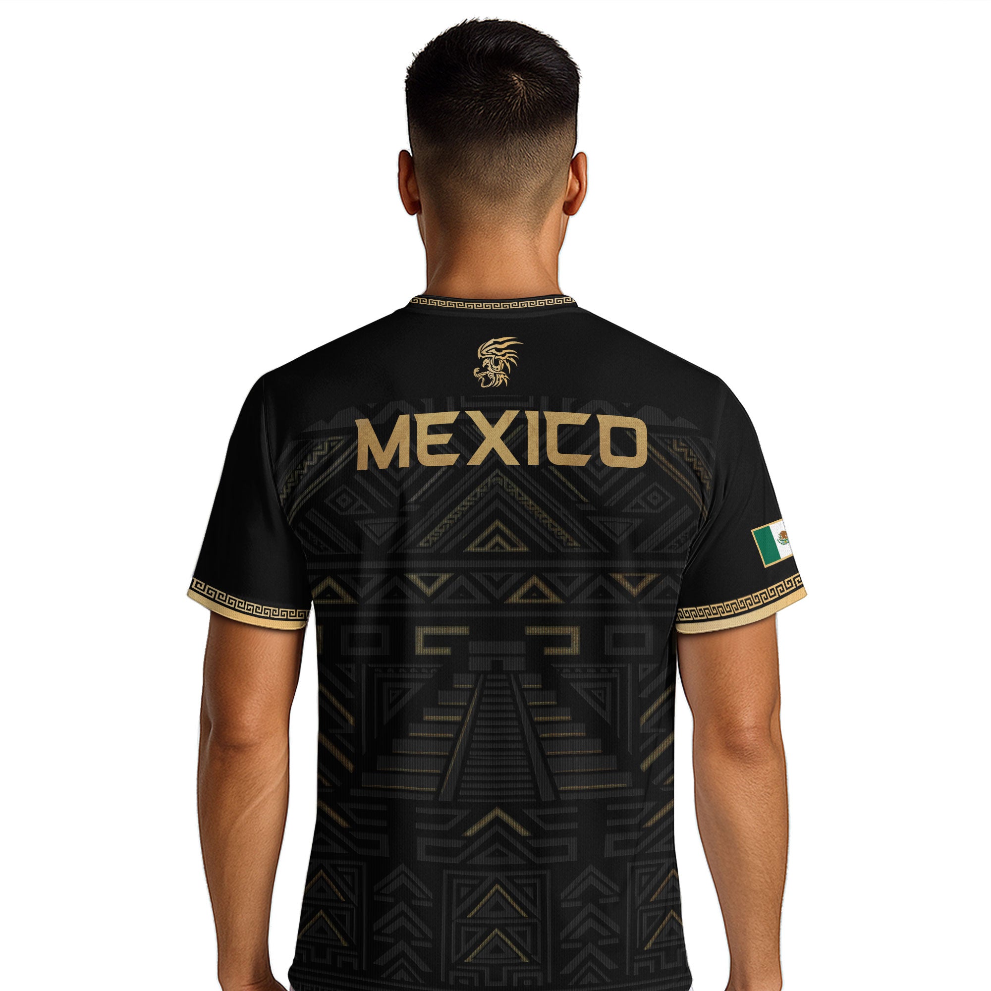 Mexico Heritage Orgullo Mexicano Black Gold Aztec Quetzalcoatl Pyramid Soccer Jersey