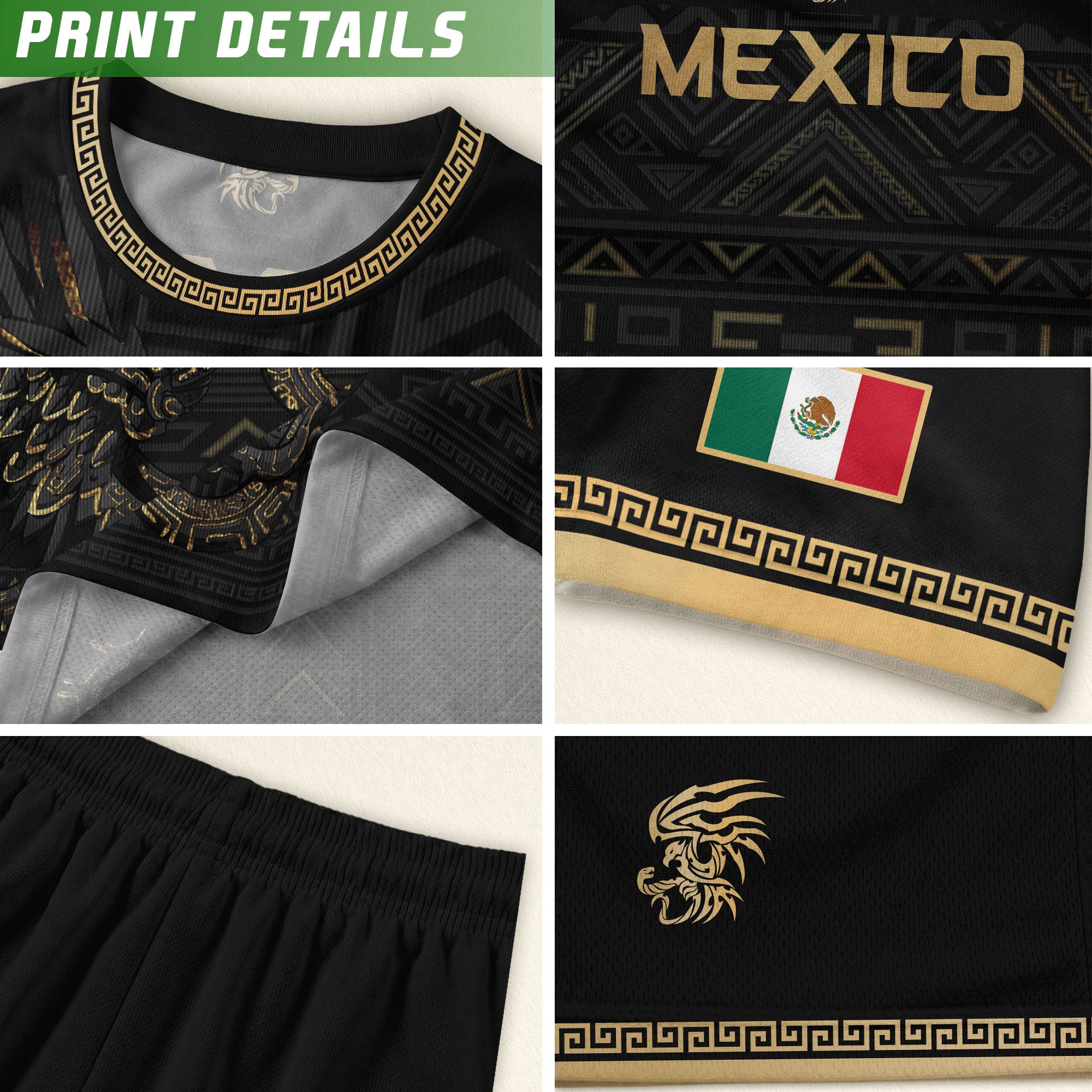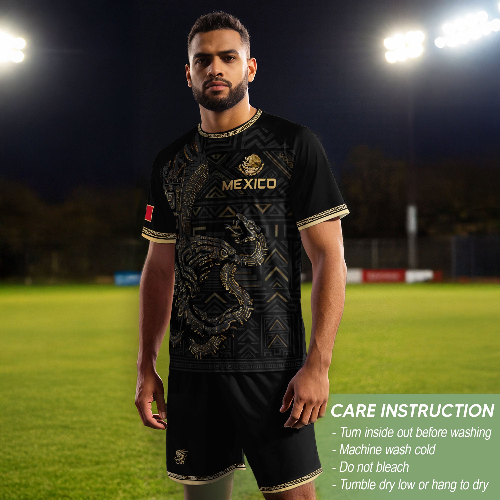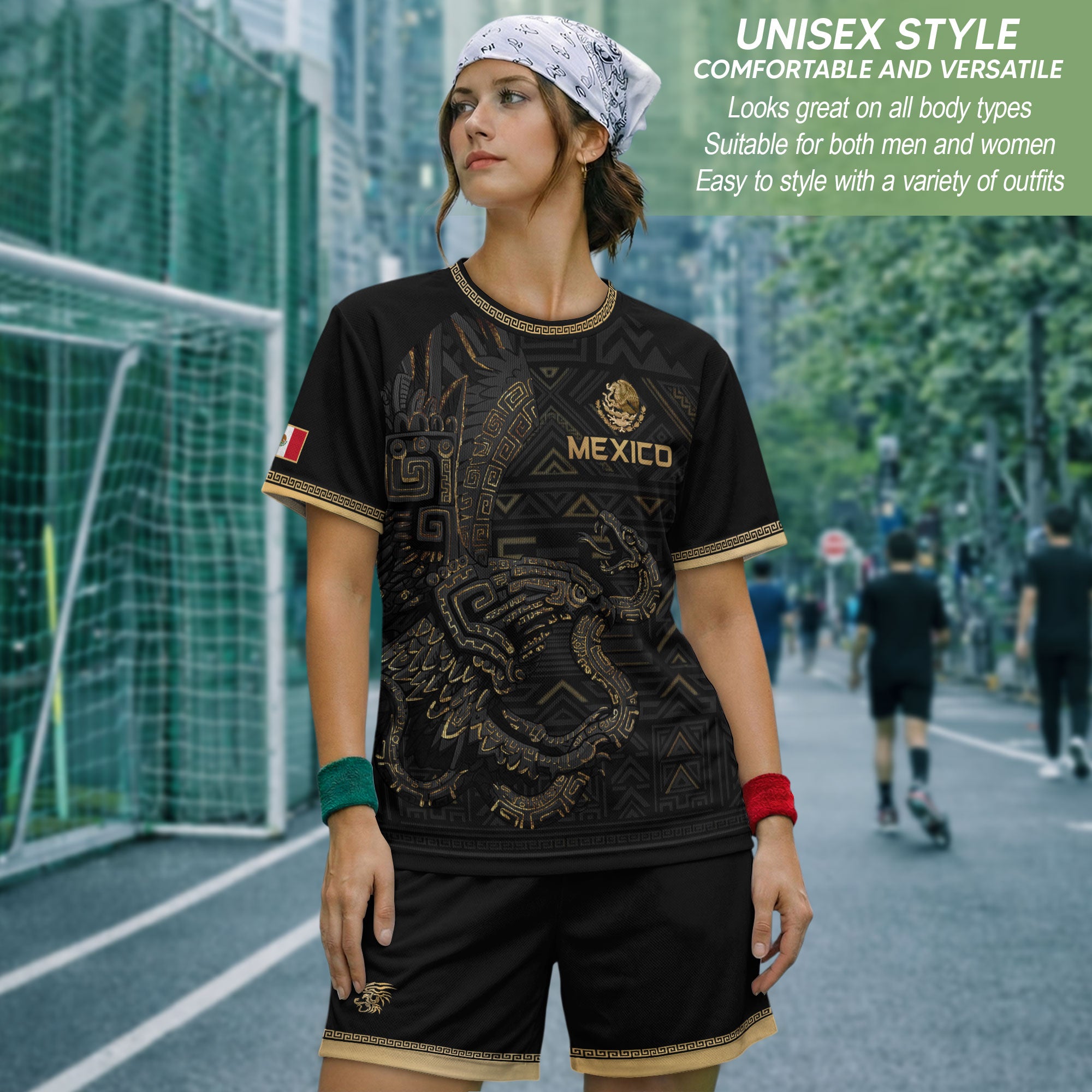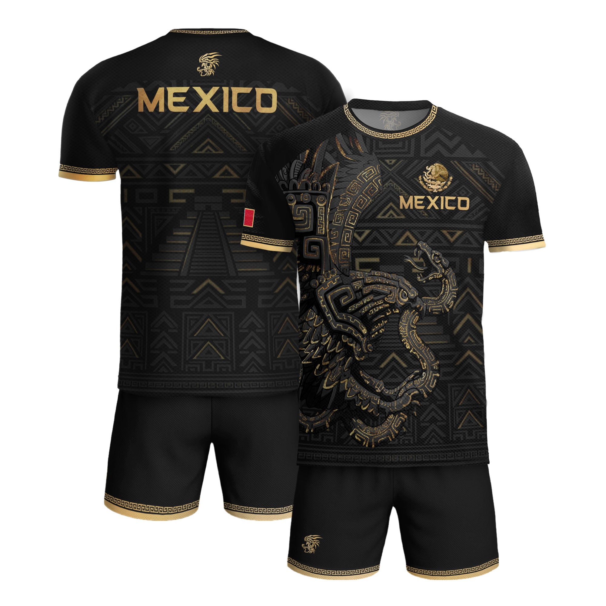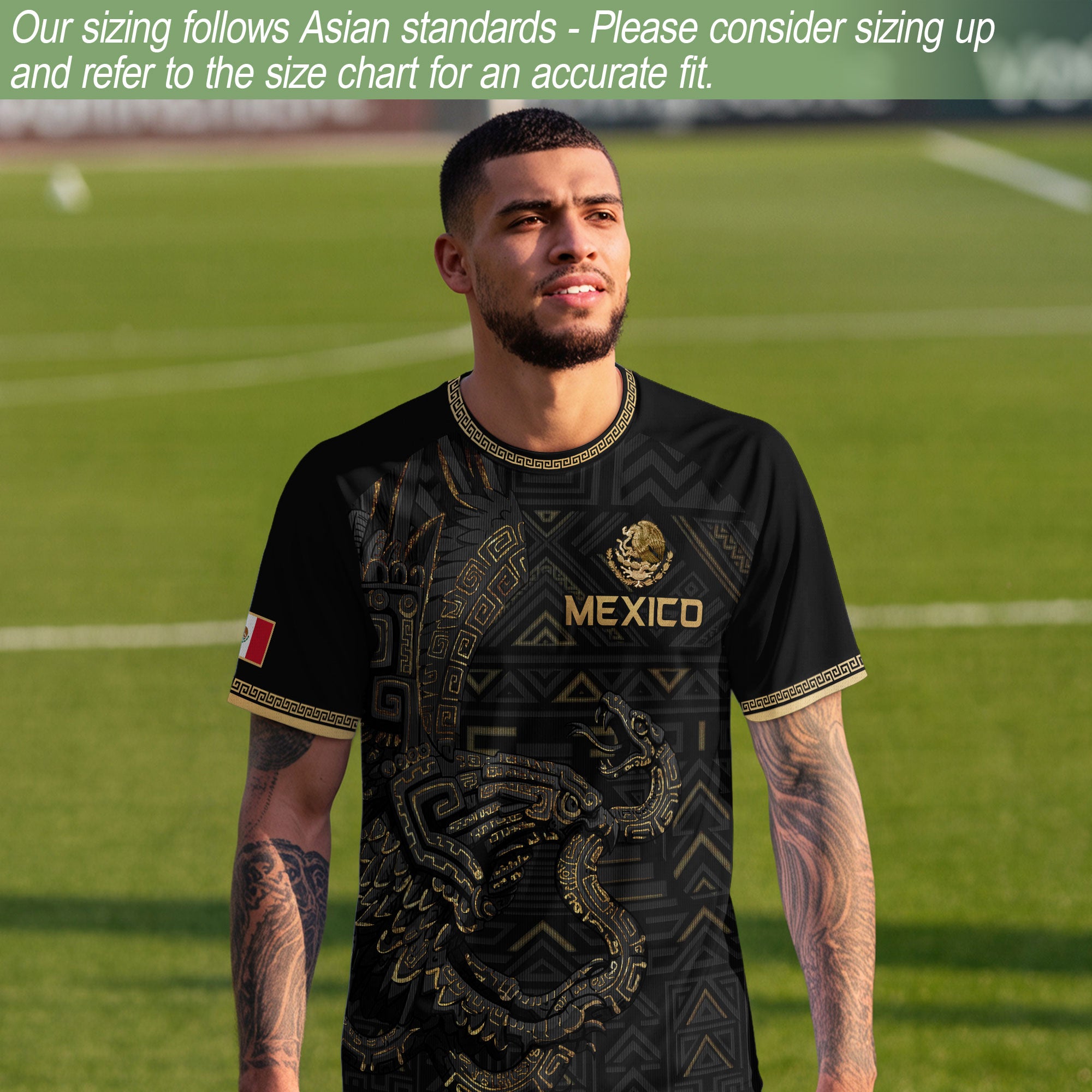 Mexico Heritage Orgullo Mexicano Black Gold Aztec Quetzalcoatl Pyramid Soccer Jersey