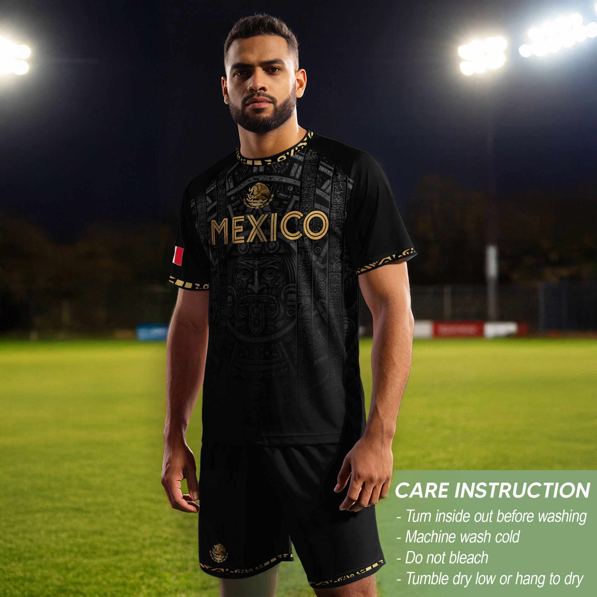 Mexico Heritage Orgullo Mexicano Black Gold Aztec Sun Stone Calendar Soccer Jersey