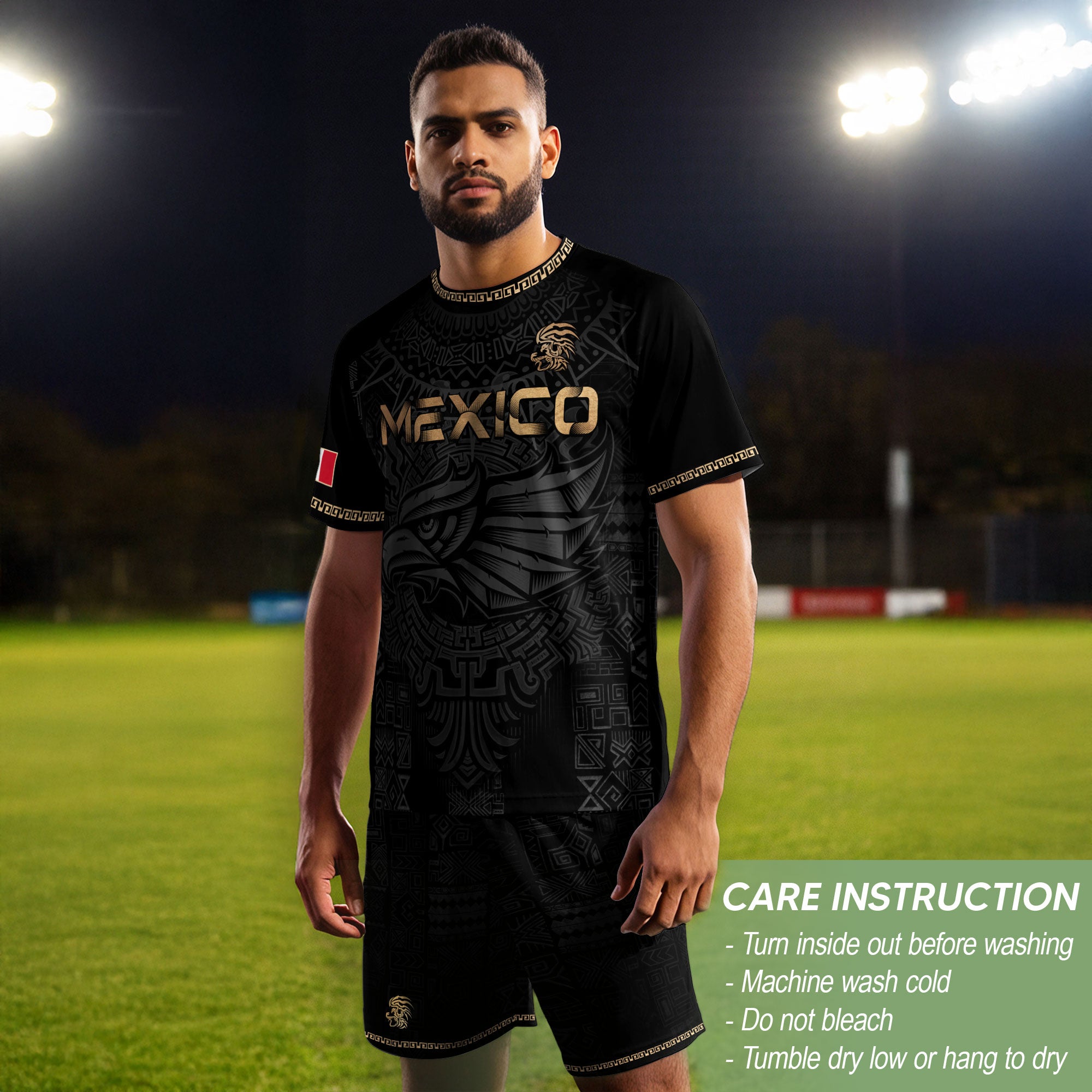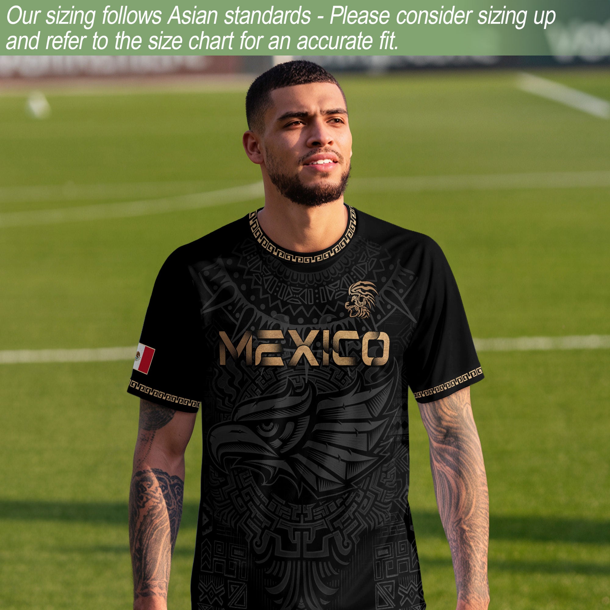 Mexico Heritage Orgullo Mexicano Black Gold Eagle Aztec Calendar Soccer Jersey