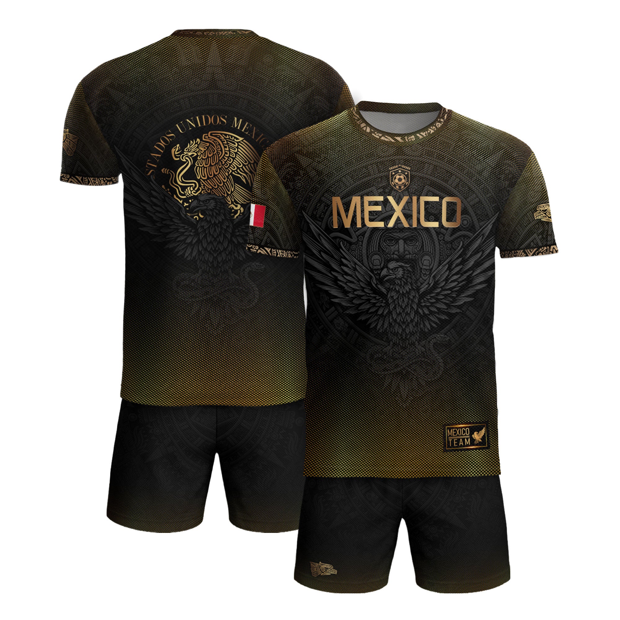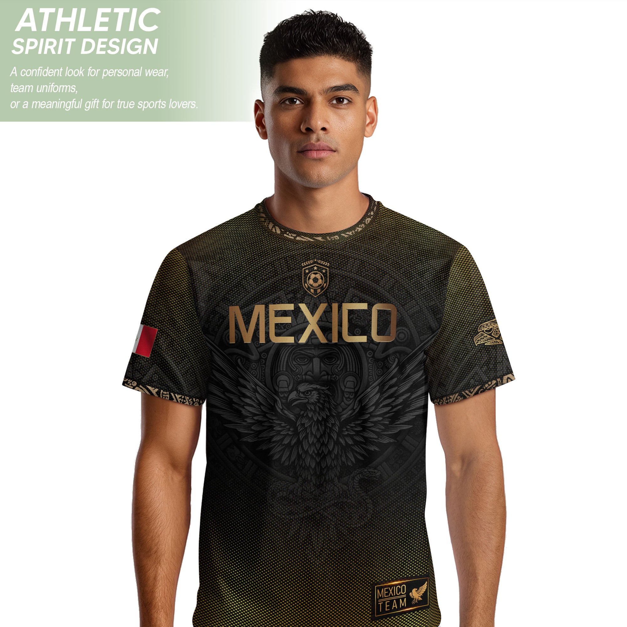 Mexico Heritage Orgullo Mexicano Black Gold Eagle Gradient Aztec Calendar Soccer Jersey