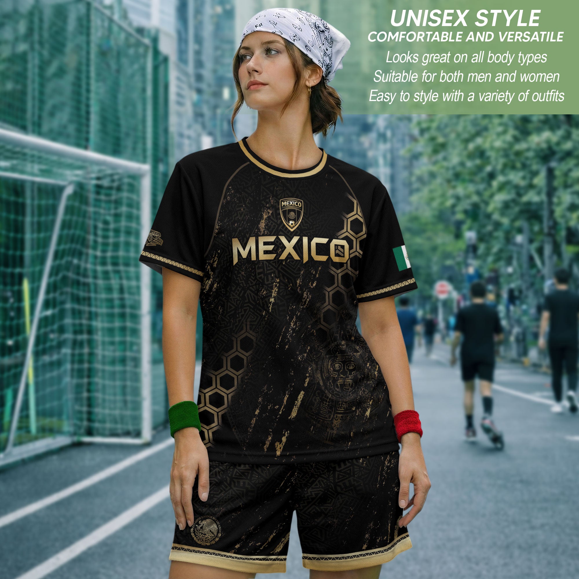 Show Orgullo Mexicano with this Soccer Jersey featuring the national eagle combined with a bold hexagon-inspired graphic design. Made from high-quality polyester that is soft, lightweight, breathable, and quick-drying, it delivers comfort for sports, training, and everyday wear.