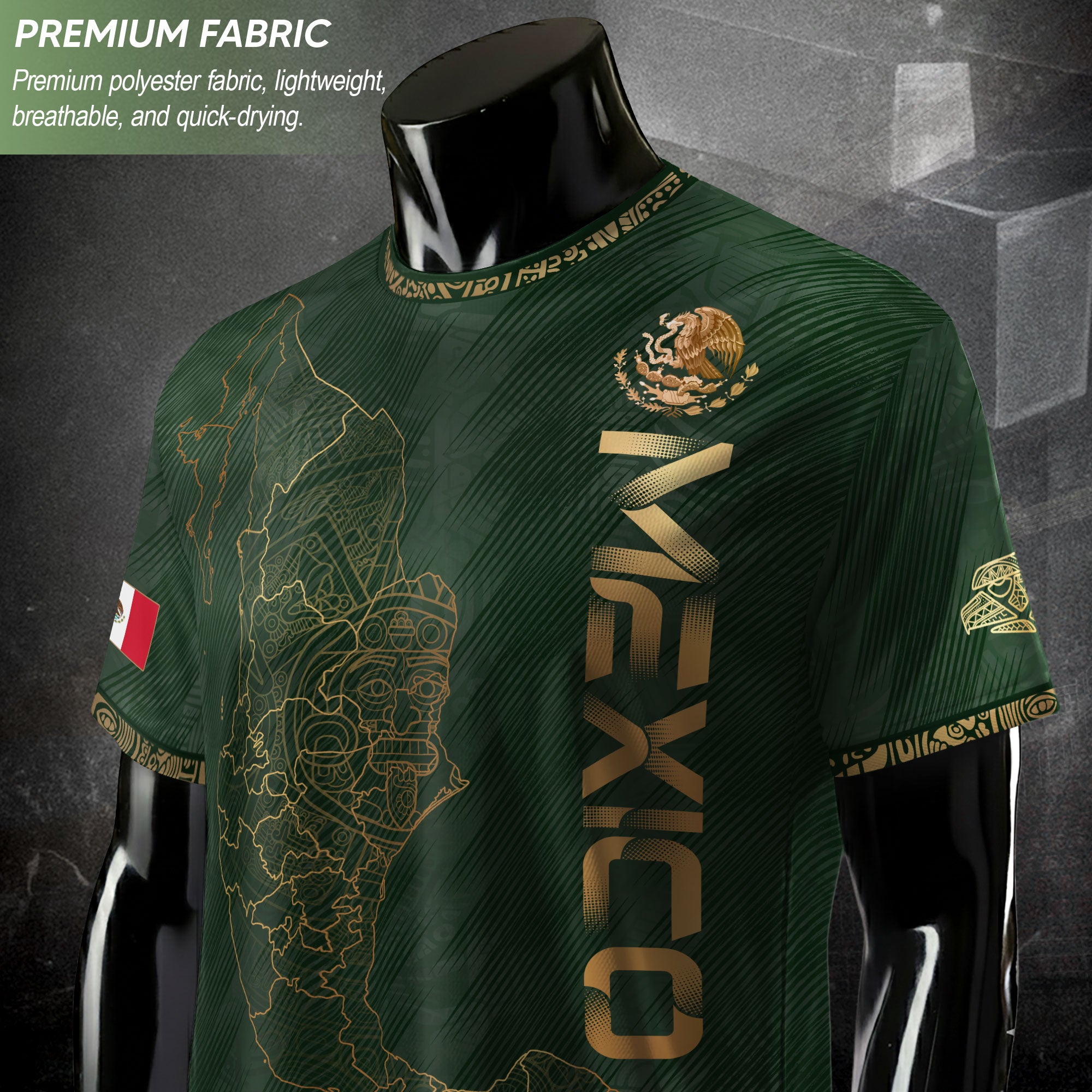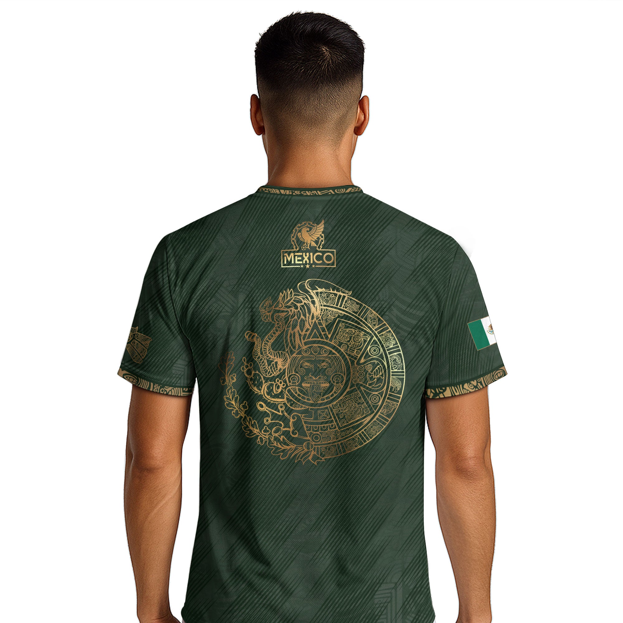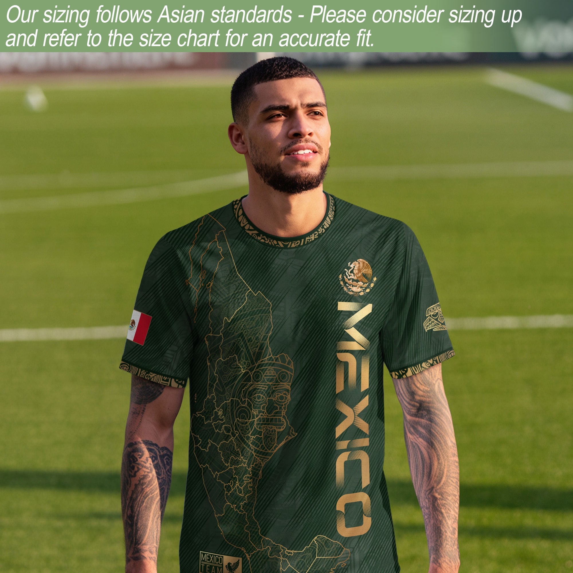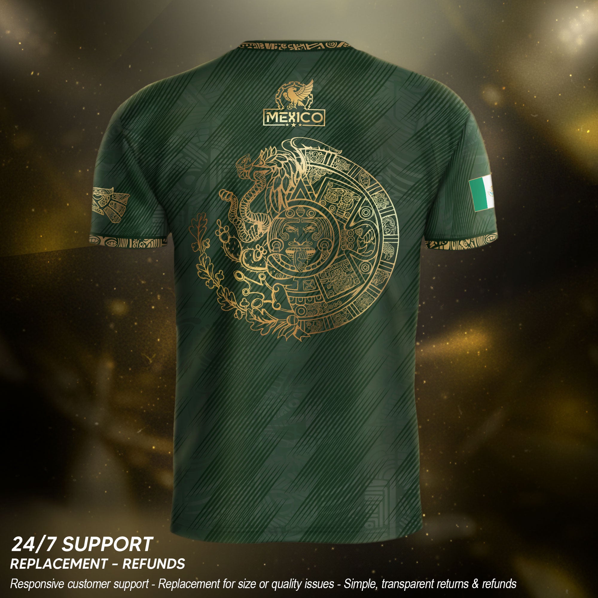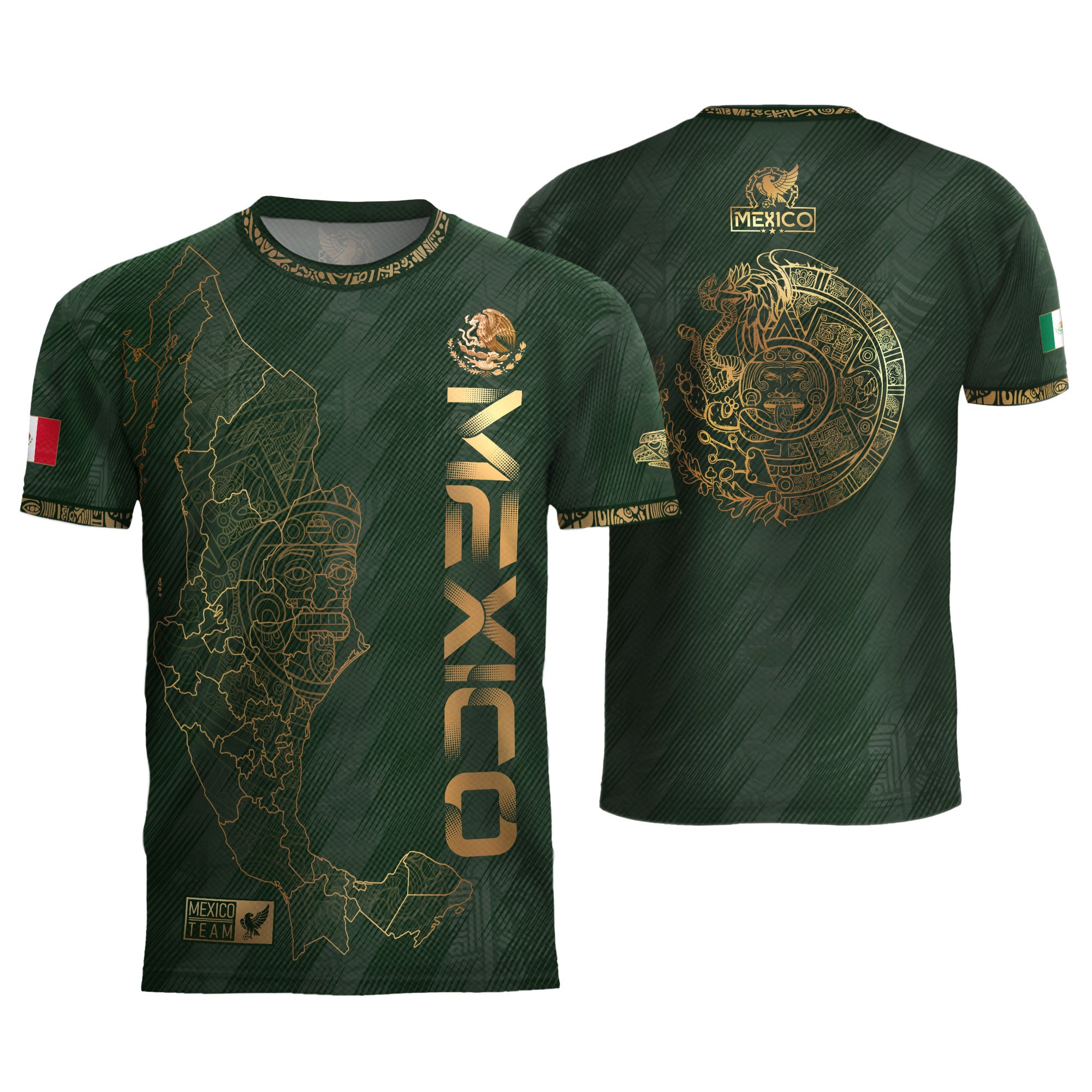 Mexico Heritage Orgullo Mexicano Green Gold Country Map Aztec Calendar Soccer Jersey