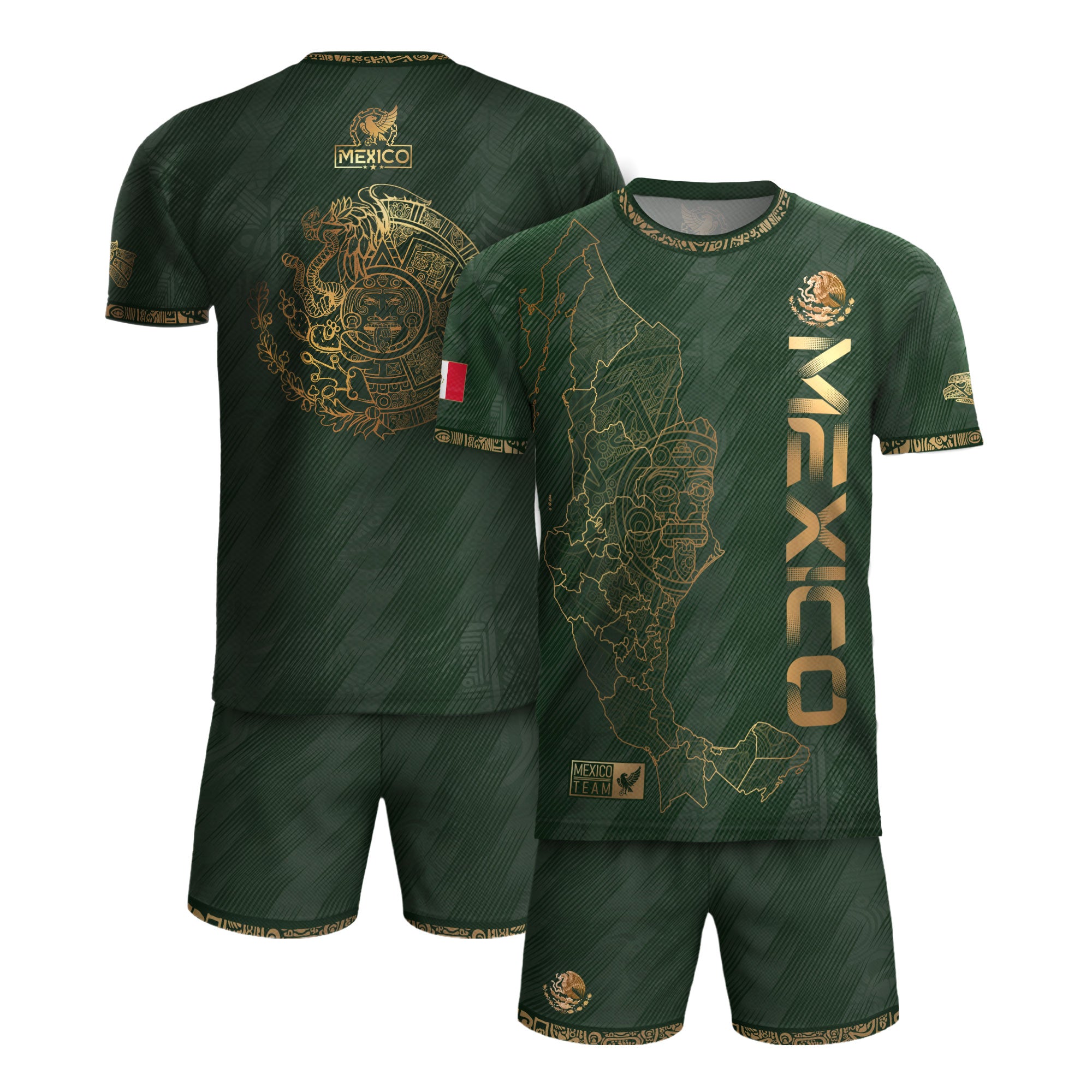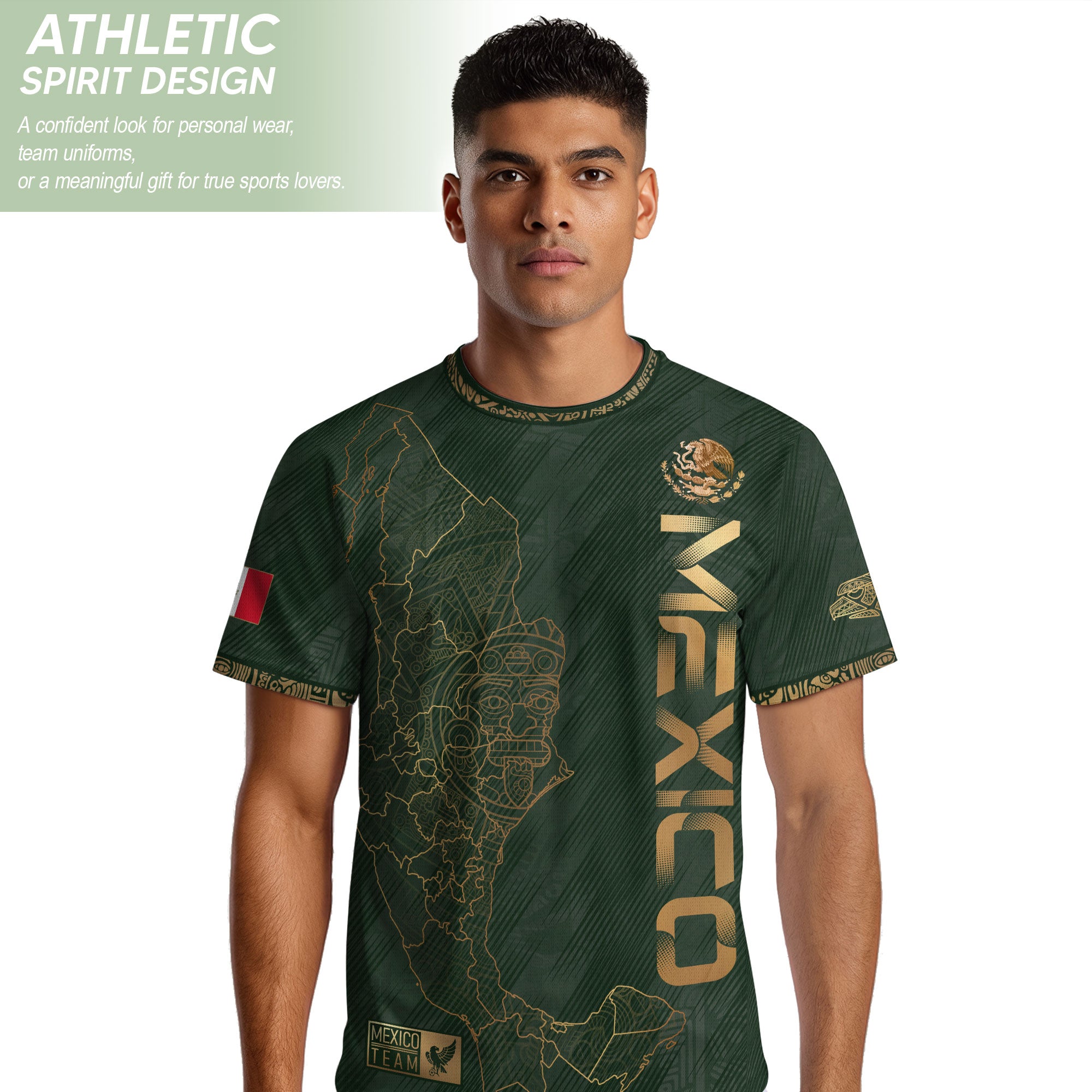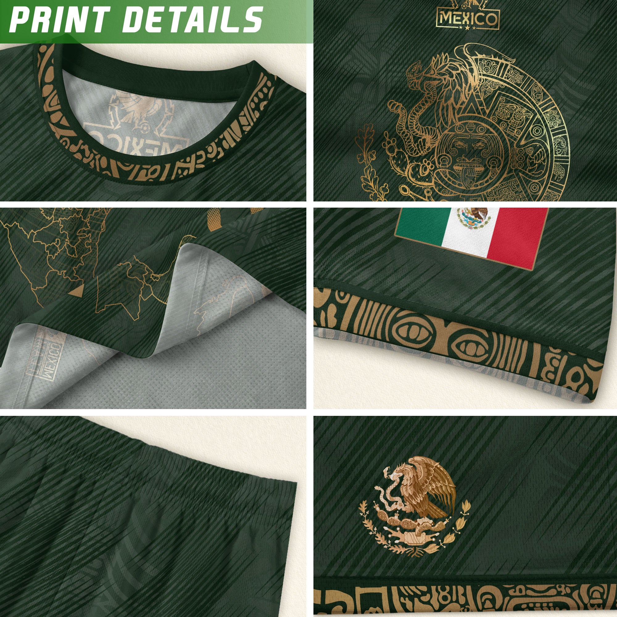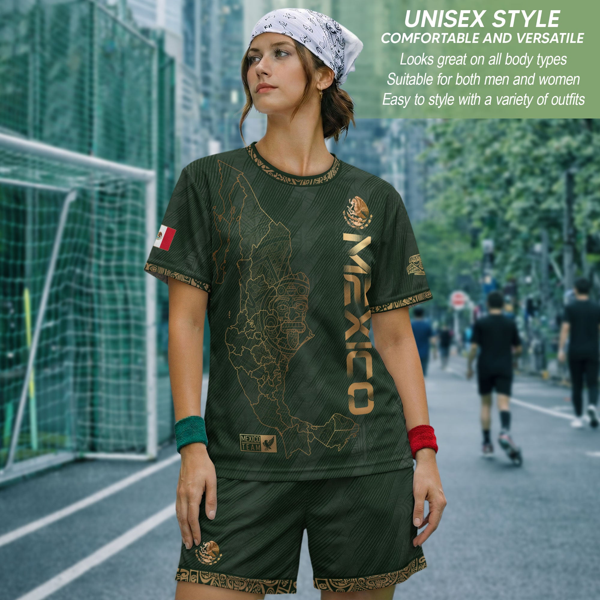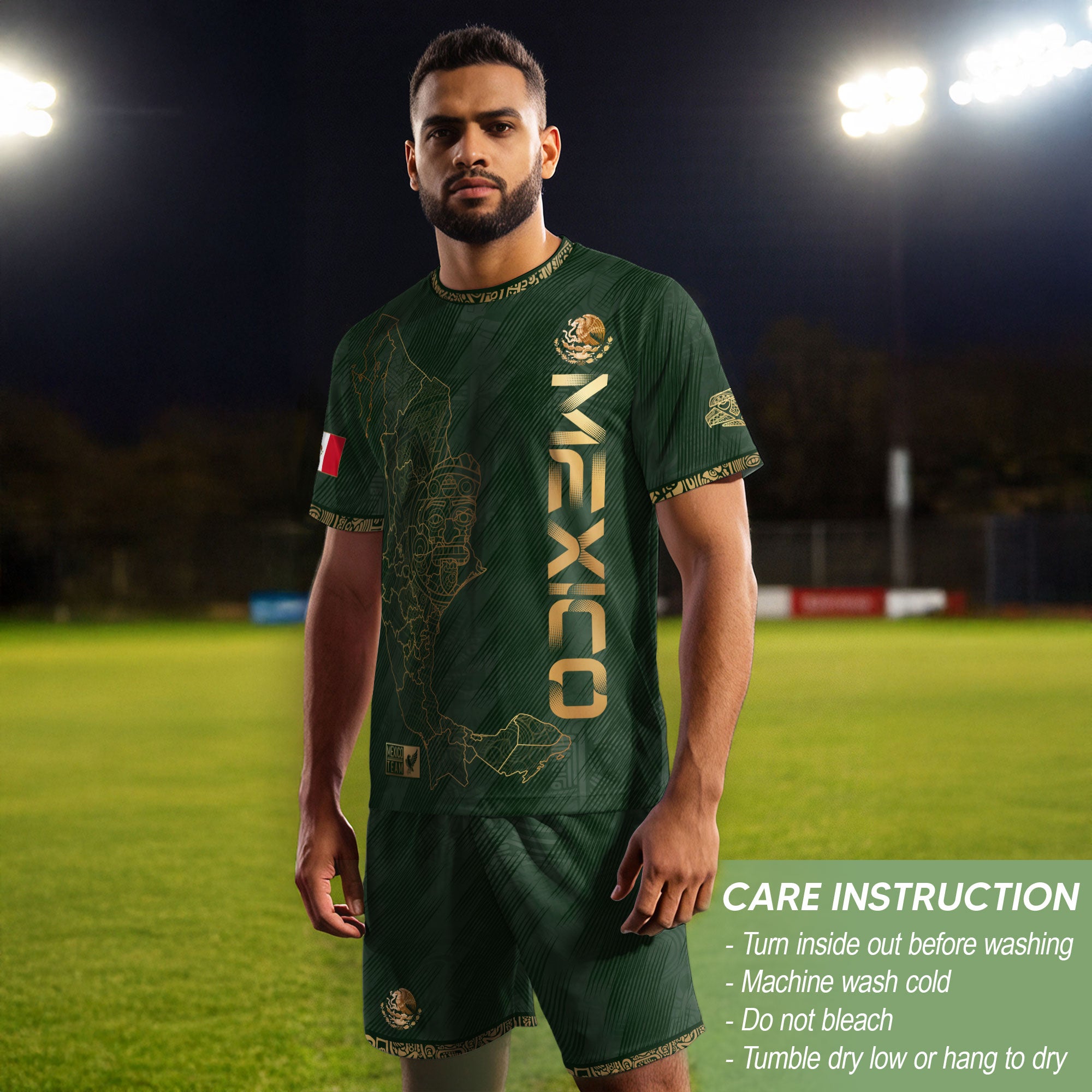 Mexico Heritage Orgullo Mexicano Green Gold Country Map Aztec Calendar Soccer Jersey