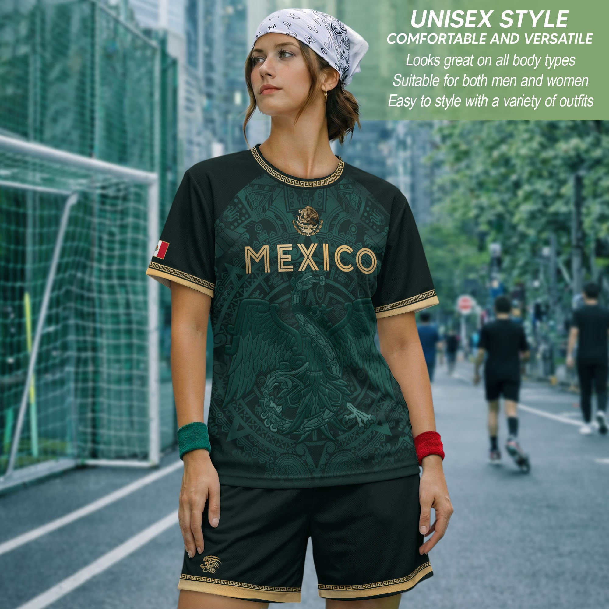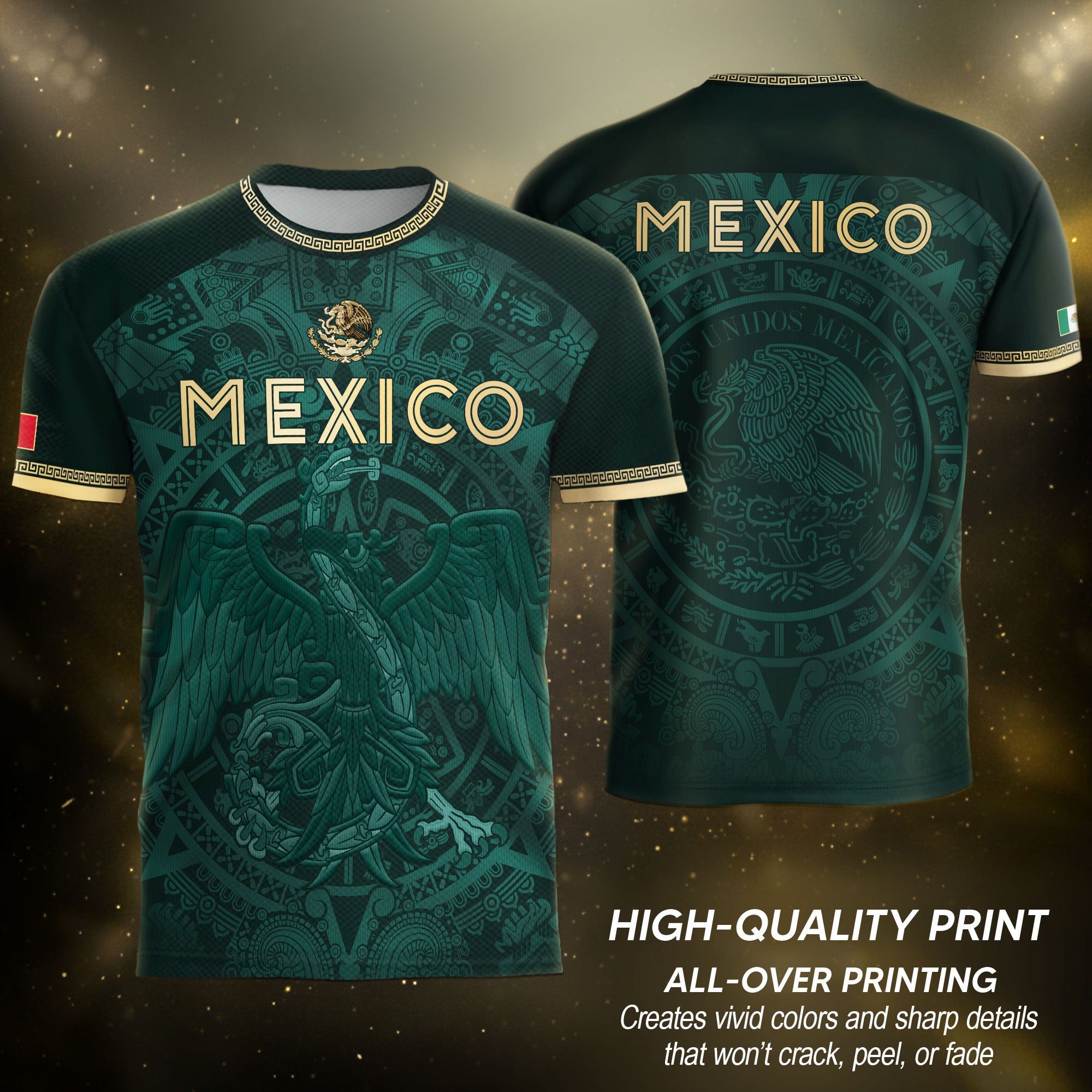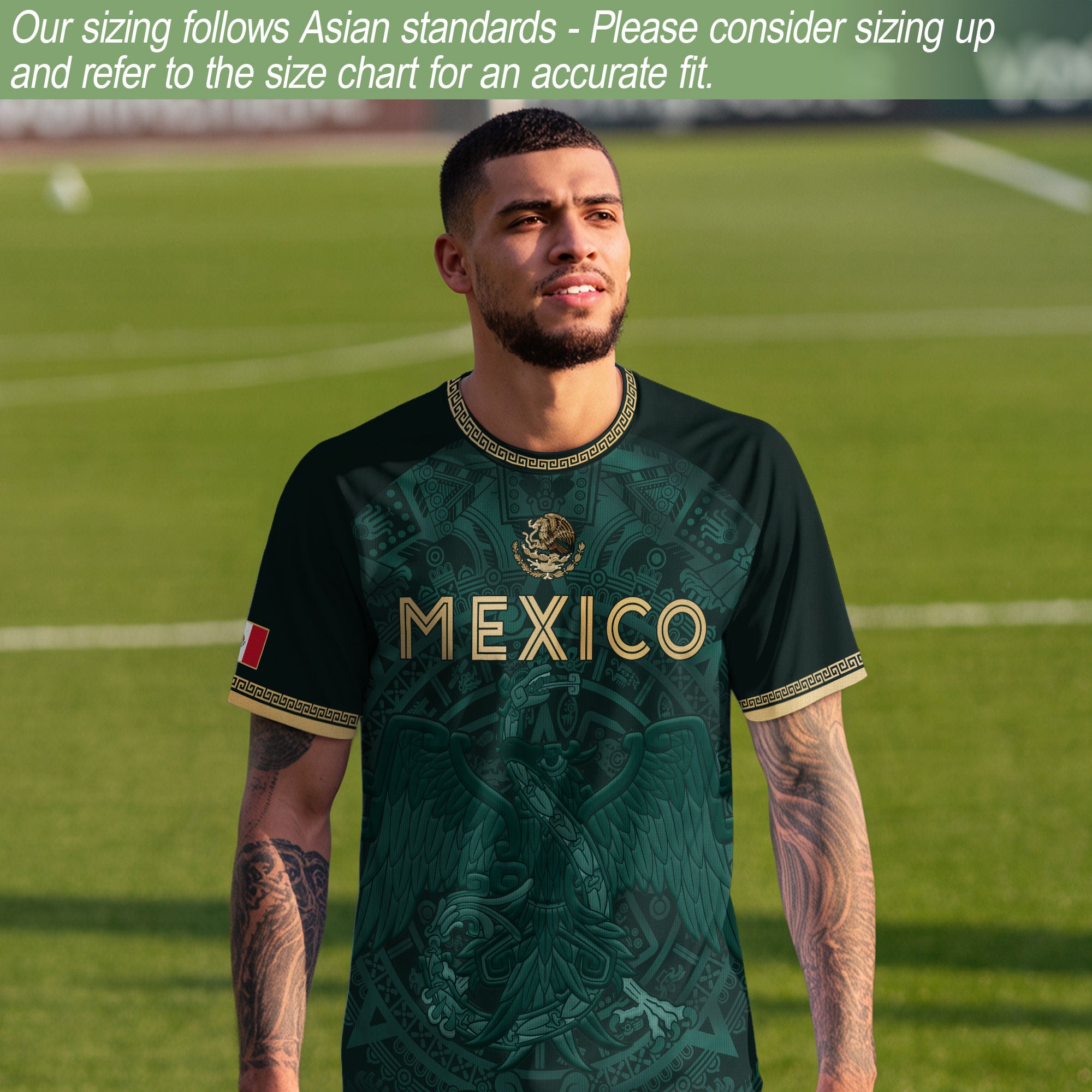 Mexico Heritage Orgullo Mexicano Green Gold Eagle Aztec Calendar Soccer Jersey