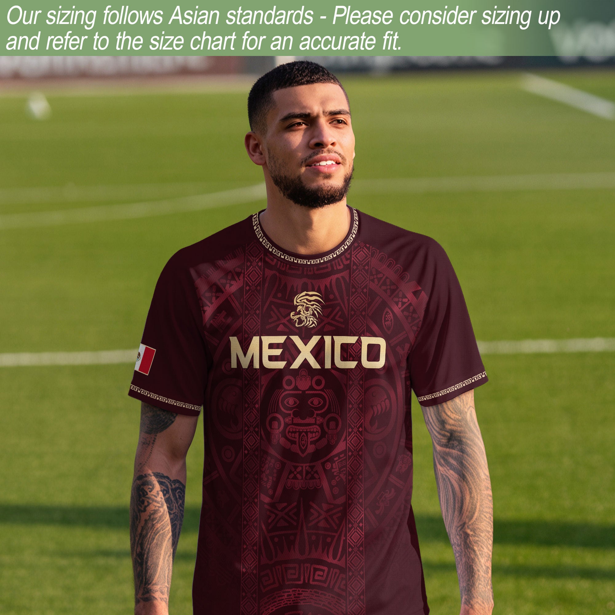 Mexico Heritage Orgullo Mexicano Maroon Burgundy Aztec Calendar Sun Stone Soccer Jersey