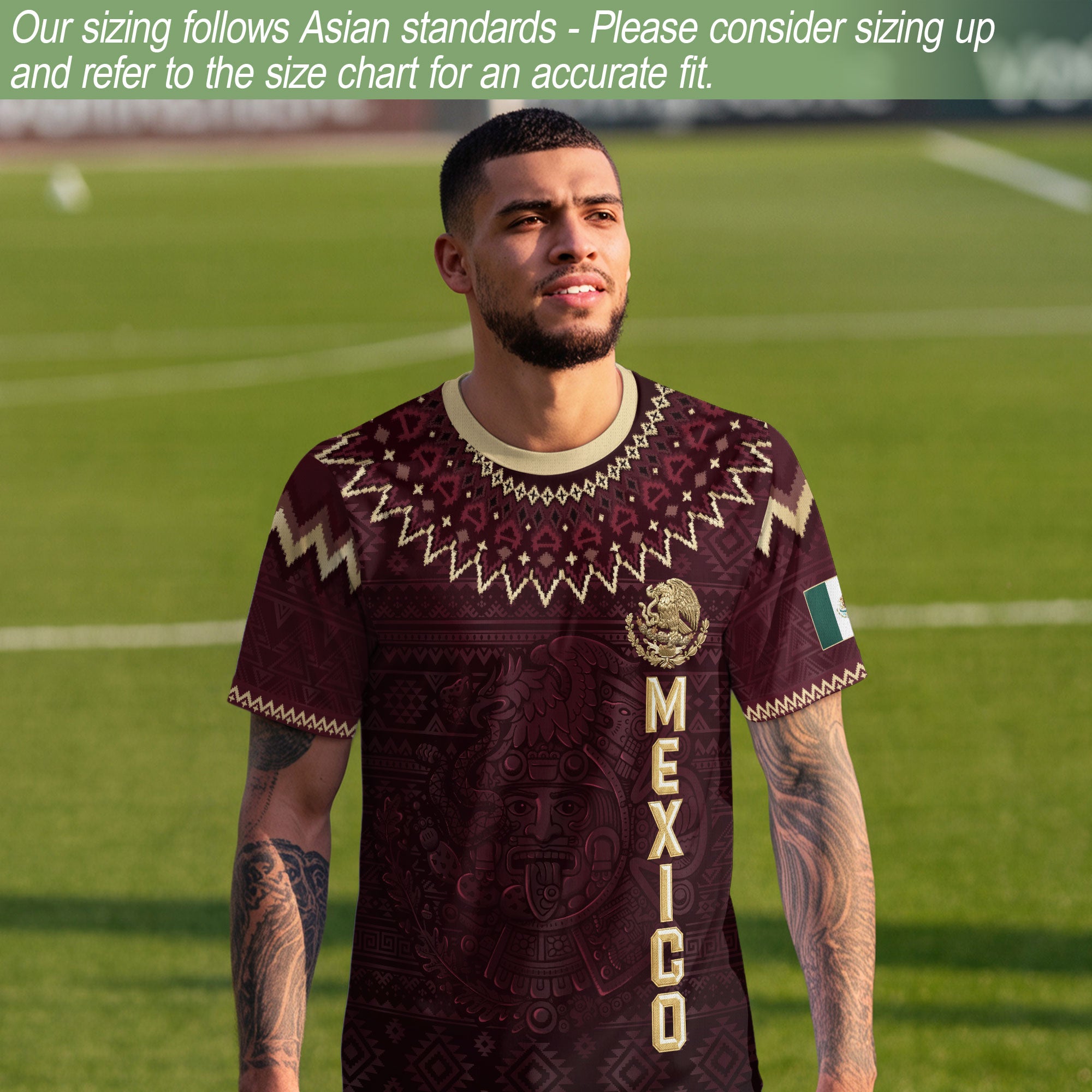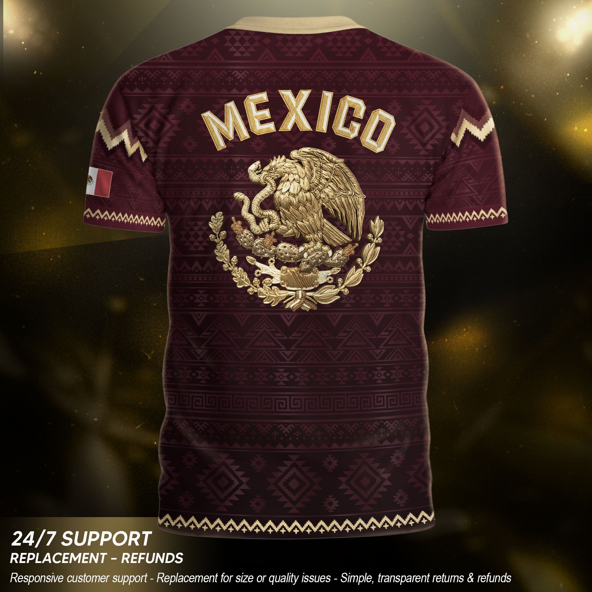 Celebrate the enduring spirit of Mexico with this Mexico Heritage Soccer Jersey, inspired by the power and symbolism of the Aztec eagle—an enduring emblem of courage, vision, and national pride. The rich maroon and burgundy tones paired with gold accents reflect heritage, strength, and a deep cultural legacy passed through generations.