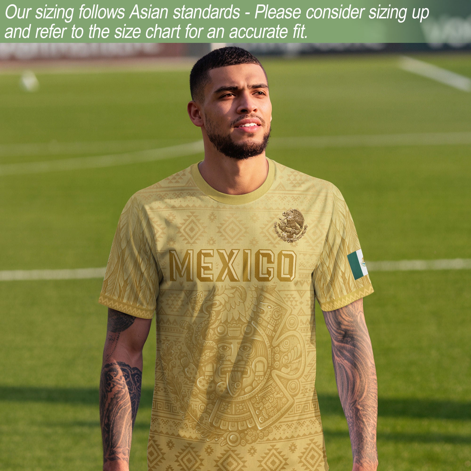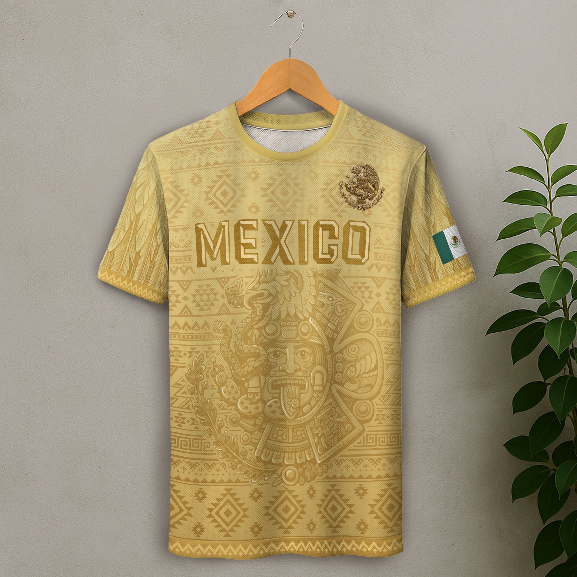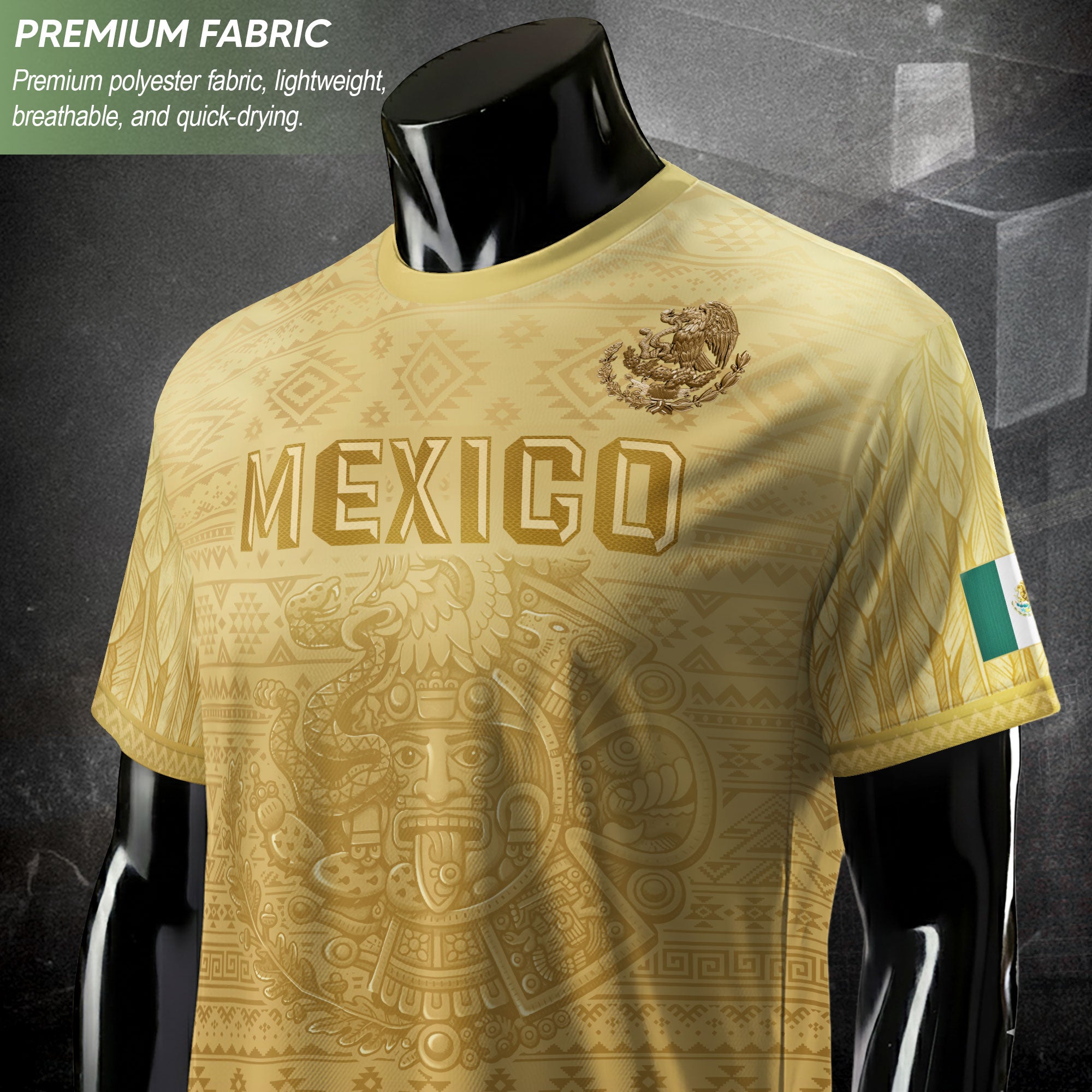 Celebrate the timeless legacy of Mexico with this Mexico Heritage Soccer Jersey, inspired by the legendary Aztec Calendar—a powerful ancient symbol representing knowledge, time, and the harmony of the universe. The bold yellow gold design radiates strength, prosperity, and pride, reflecting the brilliance of Mexico’s rich cultural history.