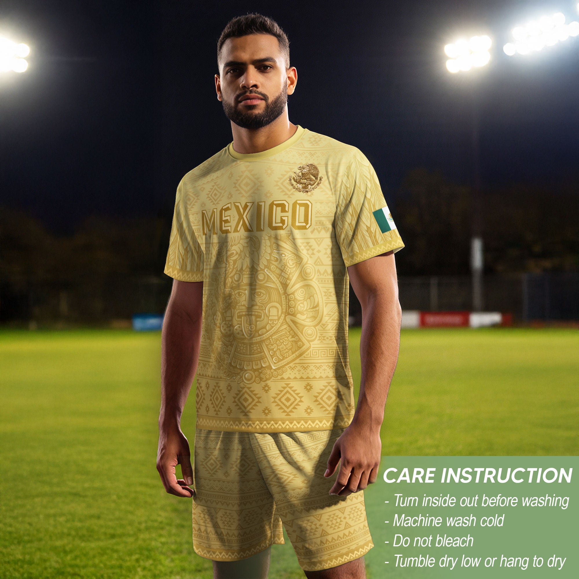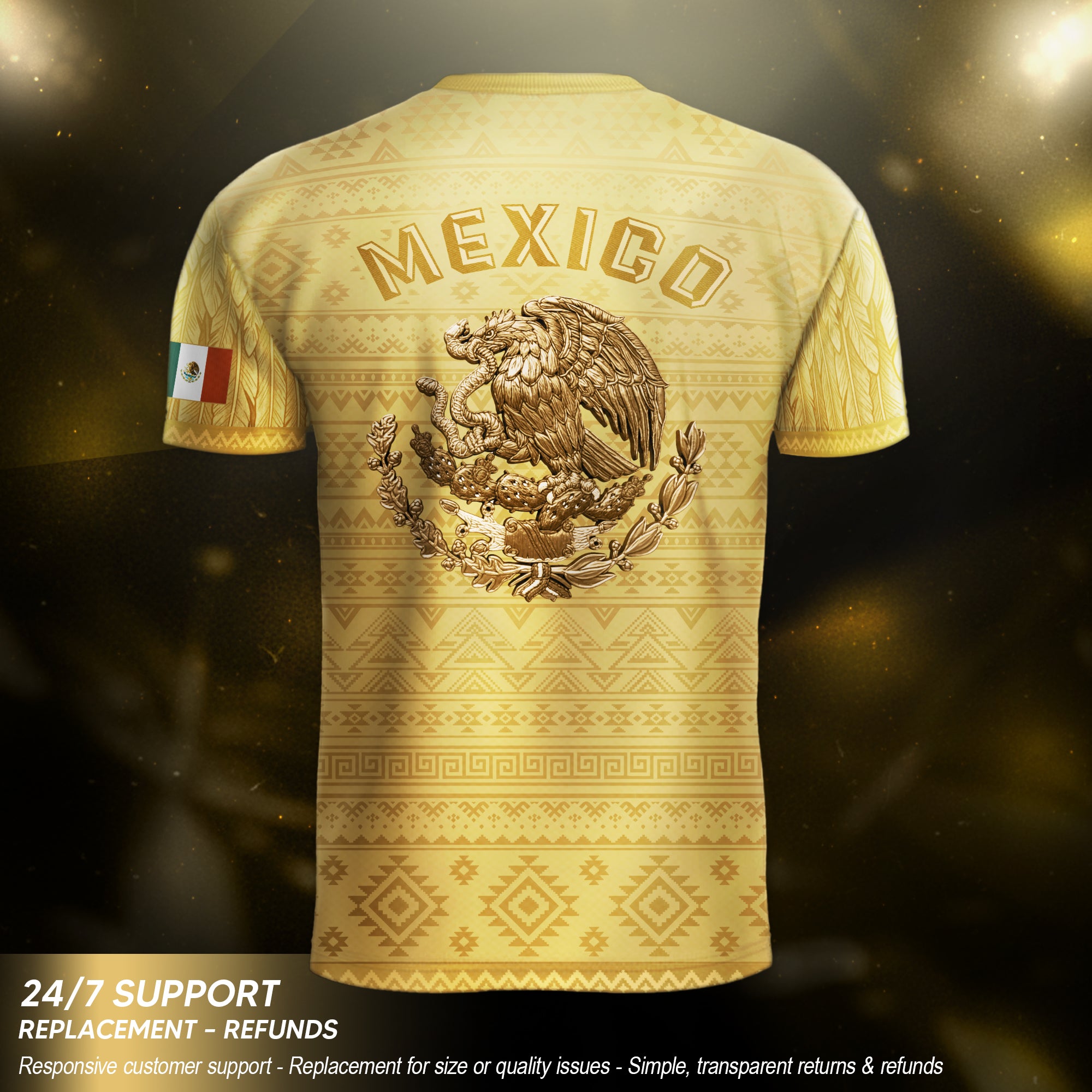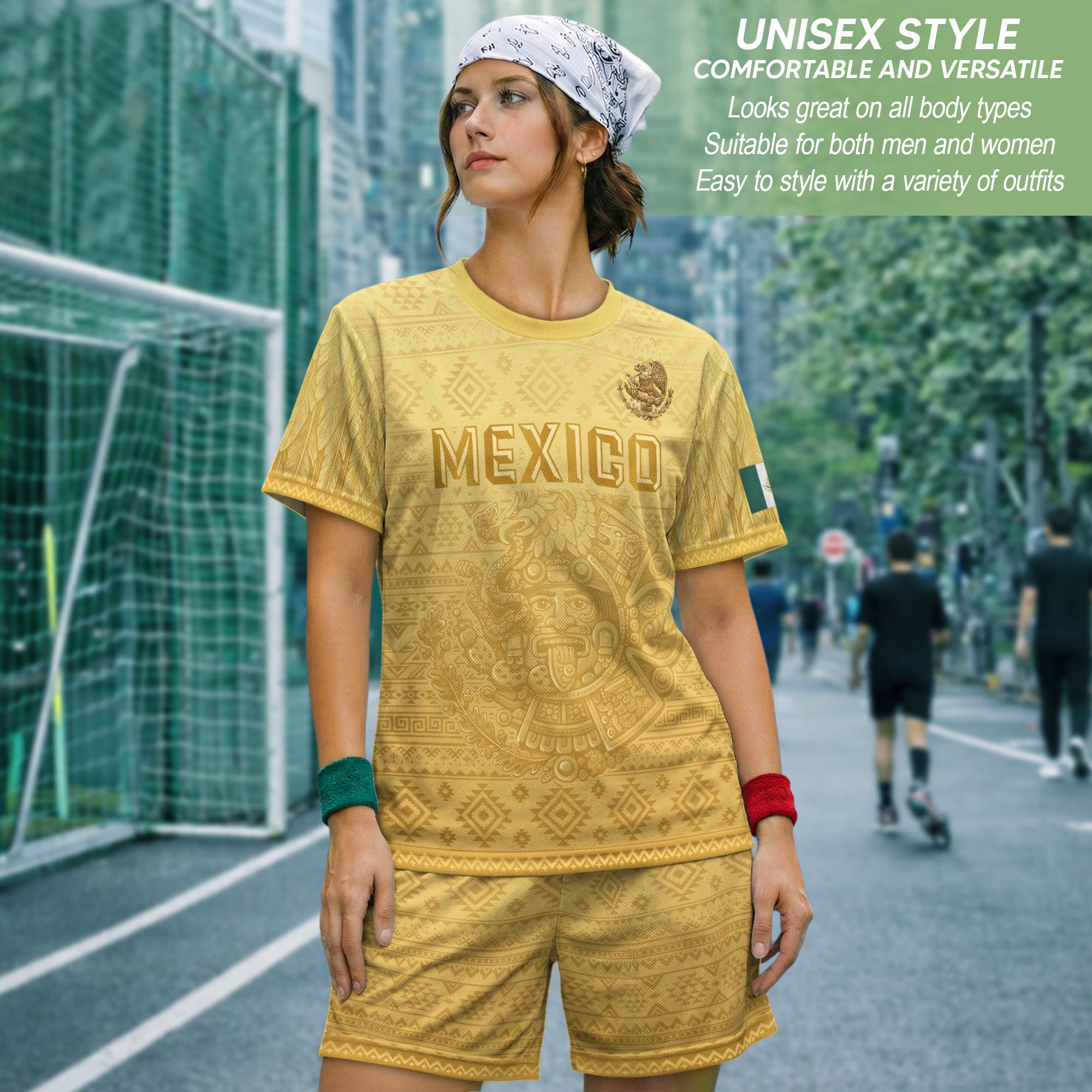 Celebrate the timeless legacy of Mexico with this Mexico Heritage Soccer Jersey, inspired by the legendary Aztec Calendar—a powerful ancient symbol representing knowledge, time, and the harmony of the universe. The bold yellow gold design radiates strength, prosperity, and pride, reflecting the brilliance of Mexico’s rich cultural history.